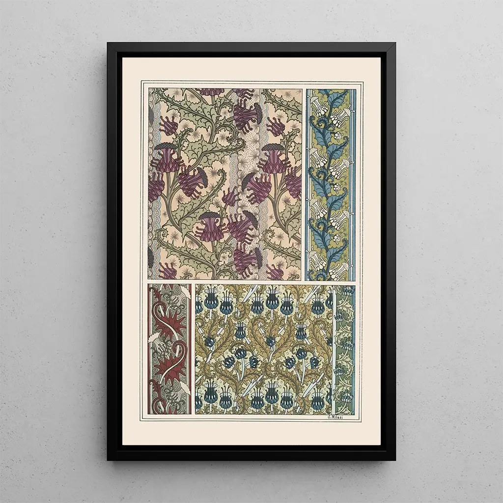 La kunstdruk Chardon 2 de Maurice Pillard Verneuil est une œuvre vibrante qui capte l’attention par sa palette de couleurs éclatantes et ses formes organiques. Les chardons, représentés avec une précision délicate, semblent danser sur la toile, créant une atmosphère à la fois joyeuse et dynamique. Les nuances de violet, de vert et de jaune se mêlent harmonieusement, évoquant la beauté sauvage de la nature. La technique de l’artiste, qui allie impressionnisme et art nouveau, offre une profondeur visuelle qui invite à la contemplation. Chaque détail, chaque pétale est soigneusement travaillé, témoignant d’un savoir-faire exceptionnel.