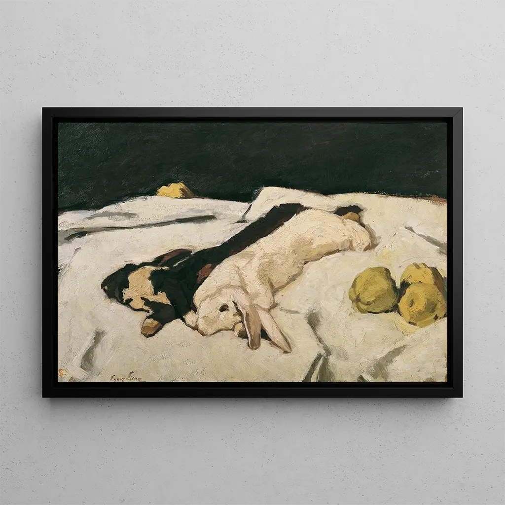 Lièvres morts : een indrukwekkende stilleven met een verbluffend realisme In "Lièvres morts" biedt Albin Egger-Lienz een stilleven met een opvallende intensiteit, waarbij twee hazen, opgehangen aan hun achterpoten, bijna fotografisch nauwkeurig in scène worden gezet. De minutieuze details van de vacht en de schaduwen creëren een sfeer die zowel somber als boeiend is. Het kleurenpalet, gedomineerd door diepe bruintinten en witte accenten, benadrukt het contrast tussen leven en dood, terwijl het ook een reflectie oproept over jacht en natuur. Dit werk, hoewel macaber, onthult een onmiskenbare schoonheid door zijn verbluffende realisme. Albin Egger-Lienz : een meester van symbolisme en realisme Albin Egger-Lienz, geboren in 1868 in Oostenrijk, is een schilder wiens werk zich bevindt op het snijvlak van symbolisme en realisme. Geïnspireerd door de alpine landschappen uit zijn jeugd en door de artistieke bewegingen van zijn tijd, ontwikkelt hij een unieke stijl die elementen van het dagelijks leven combineert met diepere thema's. Zijn werken, vaak doordrenkt met een voelbare melancholie, verkennen de relaties tussen mens en natuur. "Lièvres morts" is emblematisch voor zijn aanpak, waarbij het realistische beeld dient als achtergrond voor bredere reflecties over de menselijke conditie en de sterfelijkheid. Een decoratief kunstdruk met vele voordelen De kunstdruk van "Lièvres morts" is een gedurfde keuze voor wie een vleugje originaliteit aan hun interieurdecoratie wil toevoegen. Of het nu in een woonkamer, kantoor of eetkamer is, dit schilderij trekt onmiddellijk de aandacht en stimuleert gesprekken. De afdrukkwaliteit garandeert een opmerkelijke trouw aan het originele werk, terwijl het een visuele diepte biedt die de ruimte verrijkt. Door deze kunstdruk in uw inrichting te integreren, brengt u niet alleen een kunstwerk in huis, maar ook een uitnodiging tot reflectie over de schoonheid en de kwetsbaarheid van het leven.