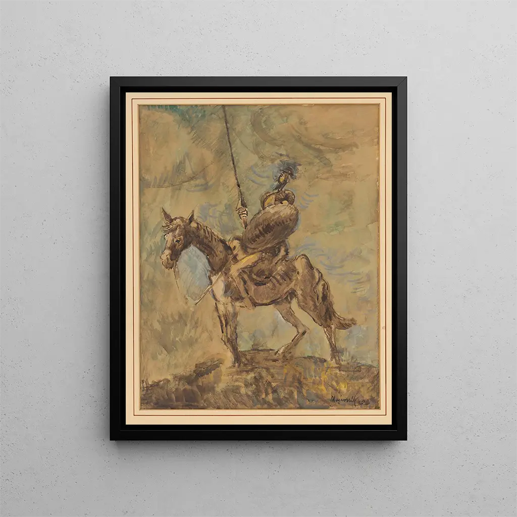 Reproductie Don Quichotte - Cyprian Majernik – Boeiende introductie In het uitgestrekte panorama van de hedendaagse kunst slagen sommige werken erin de essentie van de mensheid en haar innerlijke strijd vast te leggen. De reproductie Don Quichotte - Cyprian Majernik is een treffend voorbeeld. Geïnspireerd door de beroemde roman van Miguel de Cervantes, overstijgt dit werk de eenvoudige schilderkunst om universele thema's zoals het ideaal, de waan en de zoektocht naar jezelf aan te roeren. Door de penseelstreken van Majernik wordt de kijker uitgenodigd om onder te dompelen in een wereld waar realiteit en verbeelding samensmelten, waardoor een unieke visuele en emotionele ervaring ontstaat. Stijl en uniekheid van het werk De kracht van de reproductie Don Quichotte - Cyprian Majernik ligt in zijn onderscheidende stijl, die realisme en expressionisme combineert. Majernik gebruikt een palet van levendige kleuren die nieuw leven in de personages en landschappen blazen. De gezichtsuitdrukkingen van Don Quichotte, tegelijk doordrenkt met vastberadenheid en melancholie, onthullen de complexiteit van zijn karakter. De compositie, met zijn dynamische lijnen en gedurfde perspectieven, trekt de aandacht en leidt de kijker door het verhaal dat het werk vertelt. Bovendien speelt de kunstenaar vakkundig met licht en schaduw, waardoor de emoties van de personages worden versterkt en een sfeer ontstaat die zowel dromerig als dramatisch is. Elk detail is zorgvuldig overwogen, waardoor dit werk een waar meesterwerk is dat tot nadenken stemt en bewondering oproept. De kunstenaar en zijn invloed Cyprian Majernik, een Poolse kunstenaar, past binnen een rijke en gevarieerde artistieke traditie. Zijn parcours wordt gekenmerkt door een diepe verkenning van literaire en historische thema's, wat zich vertaalt in zijn vermogen om complexe verhalen om te zetten in treffende beelden. Zijn werk wordt beïnvloed door grote meesters van de schilderkunst, terwijl hij toch een unieke stem behoudt die hem eigen is. Majernik heeft zich weten te vestigen op het hedendaagse kunsttoneel dankzij zijn technische beheersing en gedurfde visie. Door klassieke werken zoals die van Cervantes te herinterpreteren, slaagt hij erin een dialoog te creëren tussen verleden en heden, waardoor het publiek wordt uitgenodigd om tijdloze verhalen opnieuw te ontdekken.