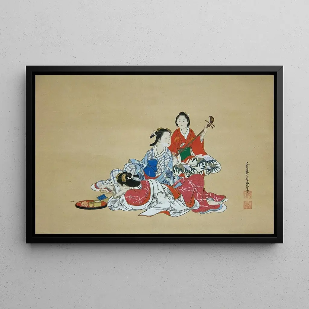 Trois Schoonheden: een viering van vrouwelijke gratie Trois Beautés van Nishikawa Sukenobu is een iconisch werk dat de elegantie en verfijning van vrouwelijke figuren vastlegt. De compositie, rijk aan details, toont drie vrouwen in gracieuze poses, gekleed in kimono's versierd met bloemmotieven. De levendige en harmonieuze kleuren, variërend van diepe roodtinten tot rustgevende blauwen, creëren een sfeer van sereniteit en schoonheid. De techniek van de ukiyo-e kunstdruk op papier, typisch voor de Edo-periode, benadrukt de texturen van de stoffen en de fijnheid van de lijnen. Dit werk nodigt uit tot een zachte contemplatie, waarbij elke blik een nieuwe nuance van charme onthult. Nishikawa Sukenobu: een meester van de ukiyo-e kunstdruk Nishikawa Sukenobu, actief in de 18e eeuw, wordt erkend als een van de meesters van de ukiyo-e kunstdruk. Zijn werk onderscheidt zich door een bijzondere aandacht voor details en een gevoeligheid voor vrouwelijke schoonheid. Geïnspireerd door de artistieke tradities van zijn tijd, wist Sukenobu elementen van de populaire cultuur te integreren terwijl hij een zekere elegantie behield. Zijn werken, vaak gericht op alledaagse thema's en vergankelijke genoegens, getuigen van een tijd waarin kunst en leven verweven waren. De reproductie van Trois Beautés biedt de mogelijkheid om deze artistieke erfenis opnieuw te ontdekken en de fijnheid van zijn stijl te waarderen. Een decoratief stuk met vele voordelen De reproductie van Trois Beautés is een ideaal decoratief stuk om je interieur te verrijken, of het nu in een woonkamer, kantoor of slaapkamer is. De kwaliteit van de afdruk en de trouw aan de originele kleuren maken het een aantrekkelijke keuze voor kunstliefhebbers. Dit schilderij brengt een vleugje elegantie en cultuur, terwijl het gesprekken over Japanse kunst stimuleert. Door deze doek in je inrichting te integreren, geef je je ruimte een verfijnde en rustgevende sfeer, en vier je de tijdloze schoonheid van vrouwelijke figuren.