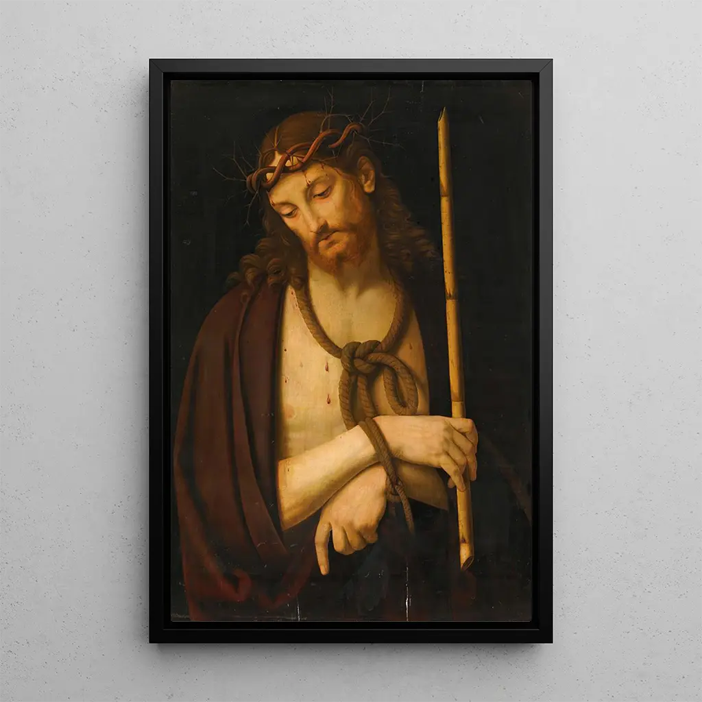 Ecce Homo : een reflectie op lijden en verlossing "Ecce Homo", een iconisch kunstdruk van Andrea Solario, stelt Christus voor met een doornenkroon, een moment vol diepe emotie en pijn. De compositie is treffend, met de nadruk op het gezicht van Christus, doordrongen van verdriet maar ook van waardigheid. De donkere kleuren en schaduwen versterken het drama van de scène, terwijl de minutieuze details van de trekken en texturen het uitzonderlijke talent van Solario onthullen. De sfeer die van dit kunstwerk uitgaat, nodigt uit tot reflectie over menselijk lijden en de belofte van verlossing, en raakt de kijker in het hart van zijn emoties. Andrea Solario : een kunstenaar op het kruispunt van invloeden Andrea Solario, actief aan het einde van de 15e eeuw en het begin van de 16e eeuw, is een schilder die de invloeden van de Italiaanse renaissance en de Vlaamse tradities heeft weten te combineren. Opgeleid in Milaan, werkte hij samen met grote meesters, wat zijn unieke stijl heeft gevormd. "Ecce Homo" past in een periode waarin religieuze kunst transformeert, en probeert meer menselijke en intieme emoties uit te drukken. Solario, met zijn realistische aanpak en aandacht voor details, heeft bijgedragen aan deze evolutie, waardoor zijn werken krachtige getuigenissen zijn van de spiritualiteit van zijn tijd. Een decoratieve kunstdruk met vele voordelen De kunstdruk van "Ecce Homo" is een kunstwerk dat elke leefruimte verrijkt, of het nu een woonkamer, kantoor of slaapkamer is. De afdrukkwaliteit maakt het mogelijk om eer te betonen aan het originele werk, terwijl het een vleugje elegantie toevoegt aan uw inrichting. De visuele aantrekkingskracht van dit kunstwerk, met zijn krachtige boodschap, wekt bewondering en contemplatie op. Door deze kunstdruk in uw interieur te integreren, creëert u een sfeer die bevorderlijk is voor reflectie en sereniteit, en viert u het genie van Andrea Solario en zijn invloed op religieuze kunst.