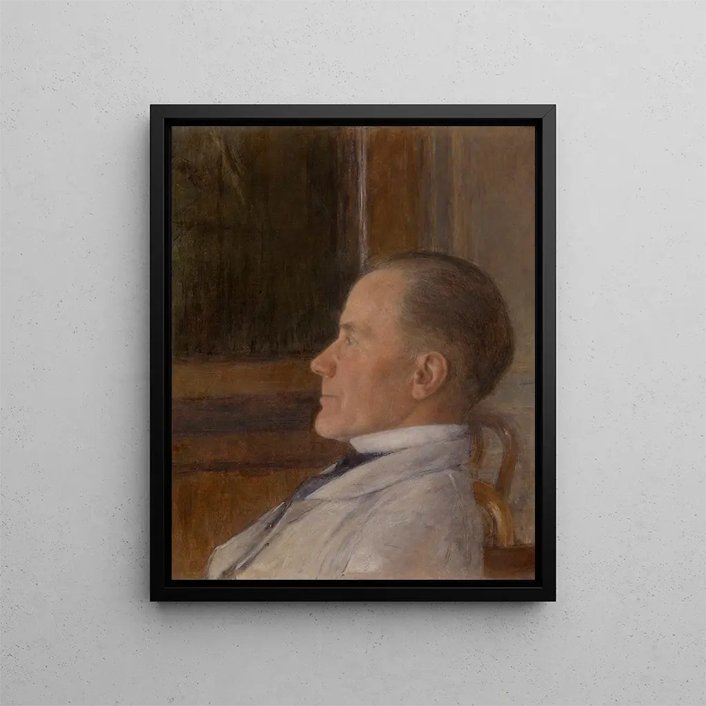 Kunstdruk Edmond Khnopff de vader van de schilders - Fernand Khnopff – Boeiende introductie In de wereld van de kunst overstijgen sommige werken hun tijdperk om symbolen te worden van een unieke visie. "Edmond Khnopff de vader van de schilders - Fernand Khnopff" is een van deze meesterwerken. Dit werk, dat resoneert met een zeldzame emotionele intensiteit, dompelt ons onder in het universum van een kunstenaar wiens blik op de samenleving en op zichzelf zowel introspectief als gedurfd is. De kunst van Khnopff, doordrenkt met mysterie en poëzie, ontvouwt zich voor ons als een ontwakende droom, waarin elk detail een uitnodiging is om de diepten van de menselijke ziel te verkennen. Stijl en uniekheid van het werk De stijl van Fernand Khnopff wordt onmiskenbaar gekenmerkt door het symbolisme, een artistieke beweging die probeert abstracte ideeën uit te drukken via concrete beelden. In "Edmond Khnopff de vader van de schilders" is de compositie zorgvuldig georkestreerd, elk element speelt een cruciale rol in het visuele verhaal. De kleuren, vaak delicaat, creëren een sfeer die zowel melancholisch als contemplatief is. De kunstenaar gebruikt vloeiende vormen en golvende lijnen om complexe emoties op te roepen, waardoor het werk zowel toegankelijk als diep raadselachtig is. Dit werk is ook een eerbetoon aan de vaderfiguur, een reflectie van interpersoonlijke relaties die onze bestaan en onze perceptie van de wereld vormen. Khnopff slaagt erin de essentie van zijn onderwerpen vast te leggen met een gevoeligheid die de toeschouwer raakt in het hart. De kunstenaar en zijn invloed Fernand Khnopff, een iconische figuur van de Belgische kunst aan het einde van de 19e eeuw, wist zich te onderscheiden door zijn vernieuwende aanpak en zijn unieke artistieke visie. Geïnspireerd door symbolistische en pre-Rafaelistische stromingen, verkende hij thema's zoals liefde, dood en identiteit, terwijl hij elementen van mysterie en fantasie integreerde. Zijn werk heeft zijn tijdgenoten diep beïnvloed en de weg geopend voor nieuwe interpretaties van kunst. Khnopff was ook een meester in portretkunst, in staat de ziel van zijn modellen vast te leggen met verbluffende precisie. Zijn invloed is nog steeds voelbaar en inspireert vele