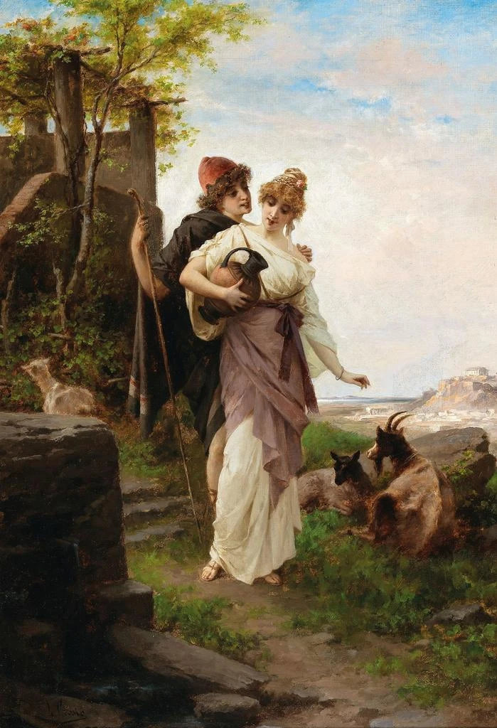 Schilderij Een idyllisch tafereel bij de fontein - Luigi Crosio | Kunstdruk