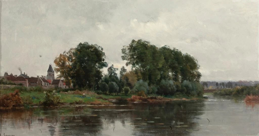 Een dorp aan de rivier - Adrien Jacques Sauzay