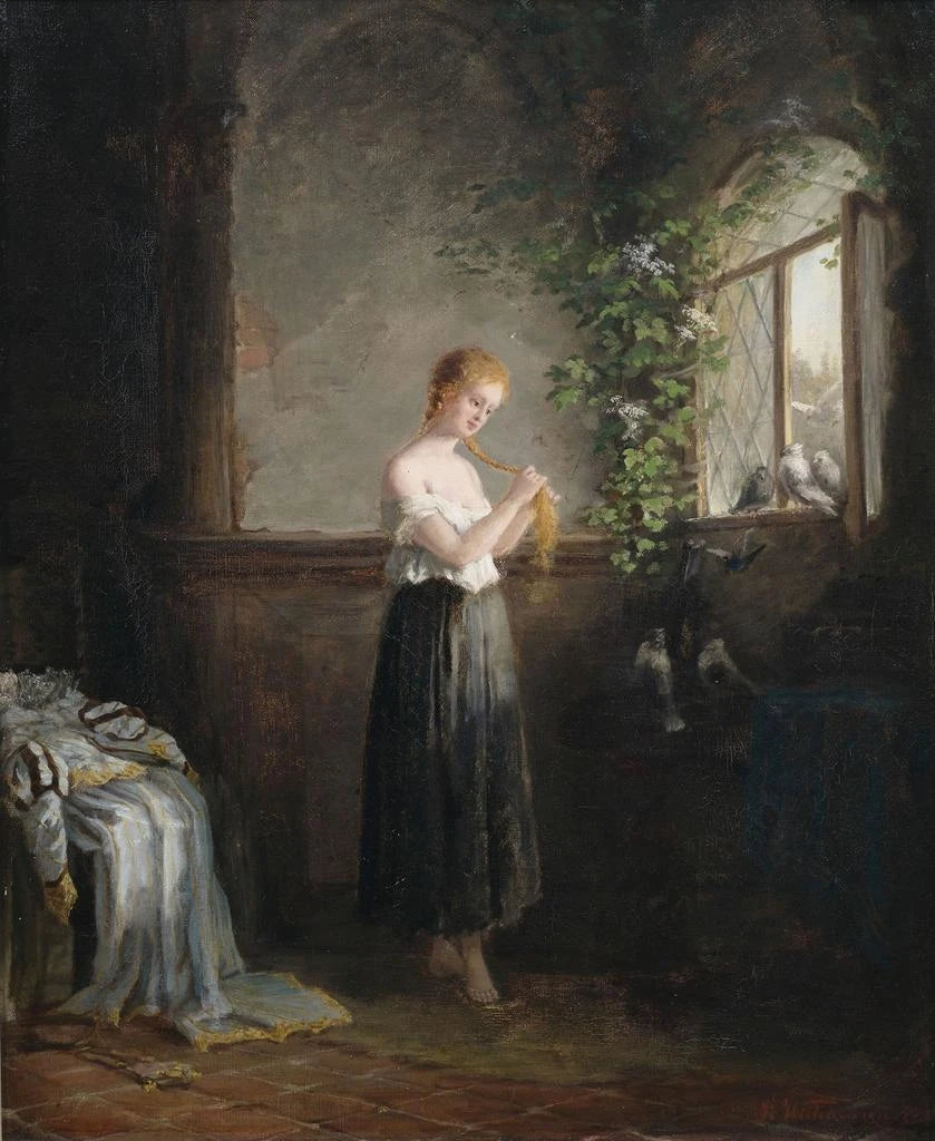 Een jong meisje vlecht haar haar - Paul Wichmann