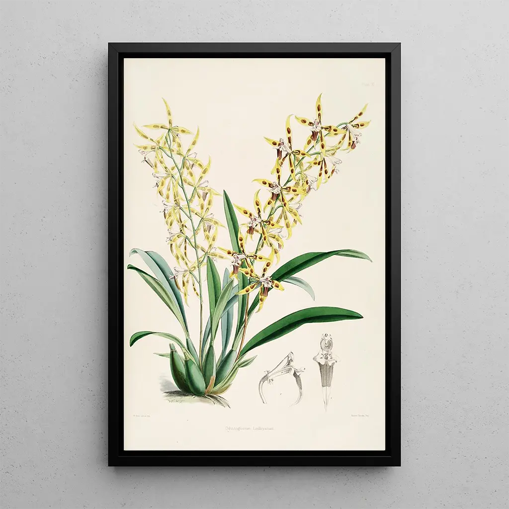 Een monografie van Odontoglossum Pl10: een ode aan de bloemrijke schoonheid L'œuvre "Odontoglossum Pl10" de James Bateman est un véritable hommage à la délicatesse des orchidées. Deze kunstdruk onderscheidt zich door zijn palet van levendige kleuren, variërend van stralend geel tot diepe paarstinten. De aquareltechniek maakt het mogelijk om de transparantie van de bloemblaadjes en de rijkdom van botanische details vast te leggen. De sfeer die deze doek uitstraalt, is zowel rustgevend als inspirerend, en nodigt de kijker uit om onder te dompelen in een wereld waar de natuur zich uitdrukt met elegantie en finesse. James Bateman: pionier in botanische illustratie James Bateman, botanist en illustrator uit de 19e eeuw, wordt erkend voor zijn significante bijdragen aan de botanische illustratie. Geïnspireerd door de wetenschappelijke ontdekkingen van zijn tijd, wist hij precisie en esthetiek te combineren in zijn werken. Bateman wijdde zijn leven aan de studie van orchideeën, en "Odontoglossum Pl10" getuigt van zijn betrokkenheid bij de schoonheid van de natuur. Zijn werk heeft niet alleen het veld van de botanica verrijkt, maar ook het publiek bewust gemaakt van de florale diversiteit, waardoor hij een onmisbare figuur uit zijn tijd is geworden. Een decoratief stuk met vele voordelen De kunstdruk "Odontoglossum Pl10" is een decoratief stuk dat harmonieus integreert in diverse ruimtes, of het nu in een woonkamer, kantoor of slaapkamer is. De afdrukkwaliteit en de trouw aan de originele kleuren maken het een ideale keuze voor wie een vleugje natuur in huis wil brengen. Met zijn onmiskenbare esthetische aantrekkingskracht wordt deze doek een boeiend middelpunt dat de bewondering van alle bezoekers oproept. Kiezen voor deze kunstdruk betekent een werk kiezen dat kunst en natuur combineert, terwijl het je decoratie verrijkt.