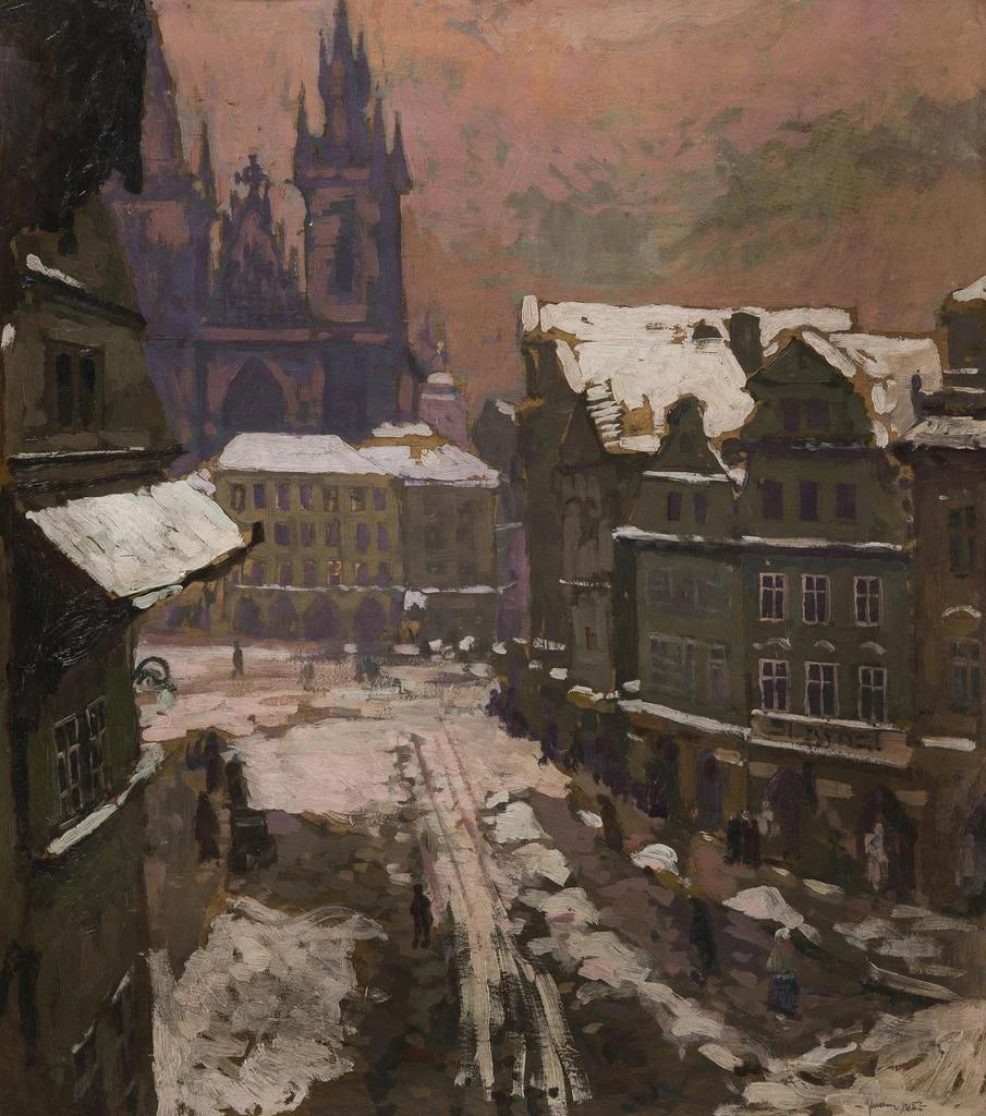 Een uitzicht op het plein van de oude stad - Gustav Macoun