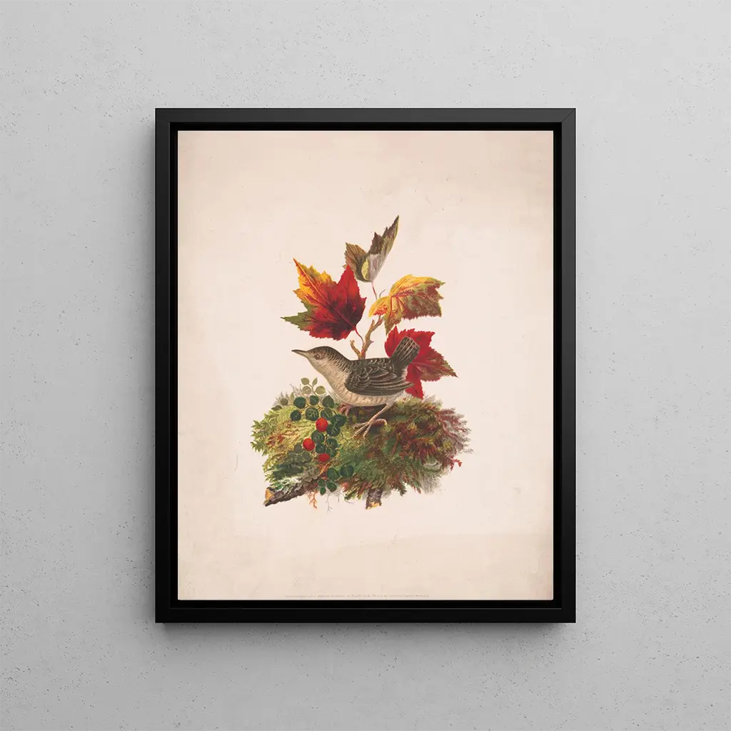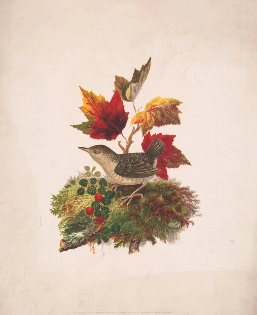 Schilderij Een vogel met herfstbladeren - Louis Prang Co | Kunstdruk