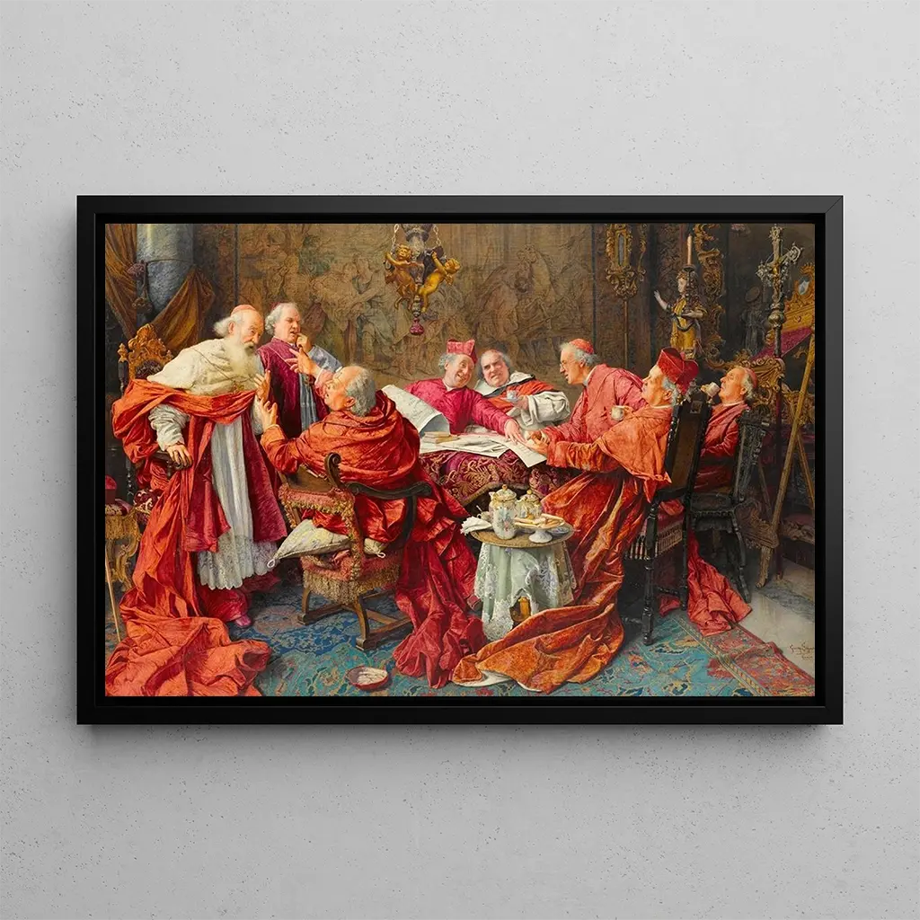 Een betwistbare vraag: een dialoog tussen schaduw en licht De kunstdruk "Een betwistbare vraag" van Giuseppe Signorini dompelt ons onder in een wereld waar licht en schaduw zich op een delicate wijze verweven. De nuances in kleur, variërend van warme tinten tot koelere tonen, creëren een sfeer die zowel rustgevend als intrigerend is. De techniek van Signorini, die vaardig realisme combineert met een impressionistische toets, nodigt de kijker uit om na te denken over de aard van de weergegeven werkelijkheid. Elke penseelstreek lijkt een verhaal te vertellen, een vraag die in het midden wordt gelaten, wat uitnodigt tot contemplatie en persoonlijke interpretatie. Giuseppe Signorini: een meester van het Italiaanse realisme Giuseppe Signorini, actief in de 19e eeuw, is een kunstenaar wiens werk binnen de stroming van het realisme valt. Geïnspireerd door de grote meesters van de Italiaanse schilderkunst, heeft hij een unieke stijl ontwikkeld die precisie en emotie combineert. Signorini heeft vaak thema's uit het dagelijks leven verkend, vluchtige momenten vastleggend met opmerkelijke gevoeligheid. Zijn werk onderscheidt zich door een bijzondere aandacht voor details en een rijke kleurenpalet, dat getuigt van zijn artistieke erfgoed. Als lid van de Italiaanse school heeft hij bijgedragen aan de evolutie van de schilderkunst door moderne elementen te integreren, terwijl hij de tradities respecteerde. Een decoratief kunstdruk met vele voordelen De kunstdruk van "Een betwistbare vraag" is een decoratief stuk dat elke ruimte kan verrijken, of het nu in een woonkamer, kantoor of slaapkamer is. De afdrukkwaliteit garandeert een opmerkelijke trouw aan de kleuren en details van het originele werk, zodat u ten volle kunt genieten van de esthetiek van Signorini. Dit schilderij trekt de aandacht en stimuleert gesprekken, waardoor het een intellectuele dimensie aan uw inrichting toevoegt. Door te kiezen voor deze canvas, kiest u voor een kunstwerk dat niet alleen uw ruimte verfraait, maar ook het denken en de uitwisseling bevordert.