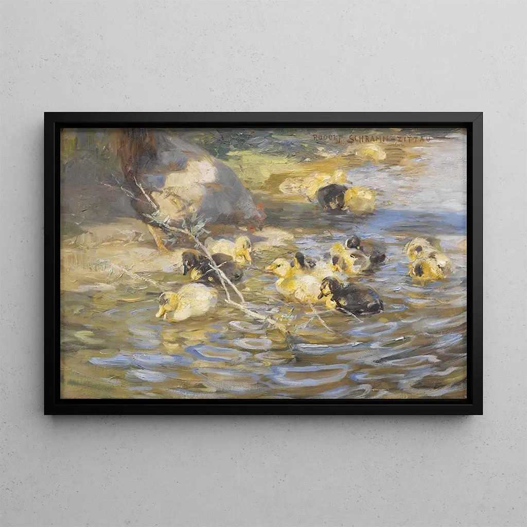 Reproductie Kanaries : een boeiende landelijke scène vol leven De kunstdruk Kanaries dompelt ons onder in een levendig schilderij, waar de natuur bloeit onder de penseelstreken van Rudolf Schramm-Zittau. De kanaries, afgebeeld in al hun pracht, bewegen zich in een serene wateromgeving, omringd door weelderige vegetatie. De levendige kleuren en de delicate details vangen de essentie van de fauna, en creëren een rustige en vrolijke sfeer. Elke penseelstreek lijkt een nieuw leven te geven aan deze vogels, en nodigt de kijker uit om de eenvoudige schoonheid van de natuur te waarderen. Rudolf Schramm-Zittau : een kunstenaar met een hart voor de natuur Rudolf Schramm-Zittau, actief in het begin van de 20e eeuw, wordt erkend om zijn talent om fauna en flora met opmerkelijke precisie weer te geven. Geïnspireerd door de naturalistische beweging, wist hij de essentie van zijn onderwerpen vast te leggen en eer te betonen aan de schoonheid van de dierenwereld. Zijn werk onderscheidt zich door een bijzondere aandacht voor details en een palet van levendige kleuren, wat getuigt van zijn liefde voor de natuur. Als kunstenaar heeft Schramm-Zittau bijgedragen aan het bewustmaken van het publiek over milieubescherming door middel van zijn boeiende illustraties. Een decoratief stuk met vele voordelen Het kiezen van een kunstdruk van Kanaries voegt een vleugje natuur toe aan uw interieurdecoratie. Of het nu in een woonkamer, eetkamer of kantoor is, dit schilderij brengt een warme en uitnodigende sfeer. De kwaliteit van de afdruk, trouw aan het originele werk, garandeert een onmiskenbare esthetische aantrekkingskracht. Door deze doek in uw ruimte te integreren, creëert u een omgeving waarin de schoonheid van de natuur wordt gevierd, terwijl u een bron van inspiratie en sereniteit voor elke dag biedt.
