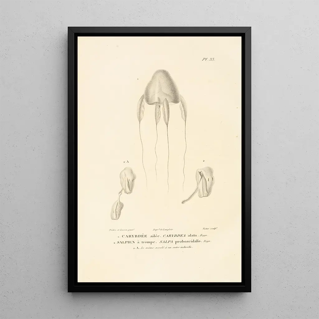 Centurie zoologique Pl33 : een exploratie van de wonderen van de dierenwereld De kunstdruk Centurie zoologique Pl33 biedt een boeiend inzicht in de dierenrijkdom, waarbij elk schepsel met verbluffende precisie wordt weergegeven. De levendige tinten en de minutieuze details van de illustraties creëren een levendige, bijna tastbare sfeer. Dit kunstwerk nodigt uit tot een aandachtige contemplatie, waarbij de schoonheid en complexiteit van de fauna worden onthuld. De vormen en kleuren combineren om een rijke en fascinerende dierenwereld tot leven te brengen, waardoor dit doek een ware ode aan de natuur is. René Primevère Lesson : een kunstenaar in dienst van de wetenschap René Primevère Lesson, natuurkundige en illustrator, heeft het XIXe eeuw gekenmerkt door zijn bijdragen aan de zoologische kunstdruk. Zijn werk past binnen een context waarin wetenschap en kunst samenkomen om de natuurlijke wereld beter te begrijpen. Geïnspireerd door de verkenningen van zijn tijd, wist Lesson zijn passie voor de fauna over te brengen via werken die wetenschappelijke nauwkeurigheid en artistieke gevoeligheid combineren. Zijn illustraties, waaronder deze kunstdruk, zijn uitgegroeid tot referenties voor kunst- en natuurliefhebbers en getuigen van een uitzonderlijk vakmanschap. Een decoratief bezit met vele voordelen De kunstdruk van Centurie zoologique Pl33 is een decoratieve keuze die liefhebbers van natuur en kunst zal aanspreken. Perfect om een woonkamer, kantoor of slaapkamer te verfraaien, brengt dit doek een vleugje originaliteit en verfijning. De afdrukkwaliteit garandeert een opmerkelijke fideliteit aan de details en kleuren van het originele werk, waardoor een boeiend middelpunt in uw inrichting ontstaat. Door voor dit kunstwerk te kiezen, verrijkt u uw ruimte en viert u de schoonheid van het dierenrijk, terwijl u uw gasten een bron van inspiratie en reflectie biedt.