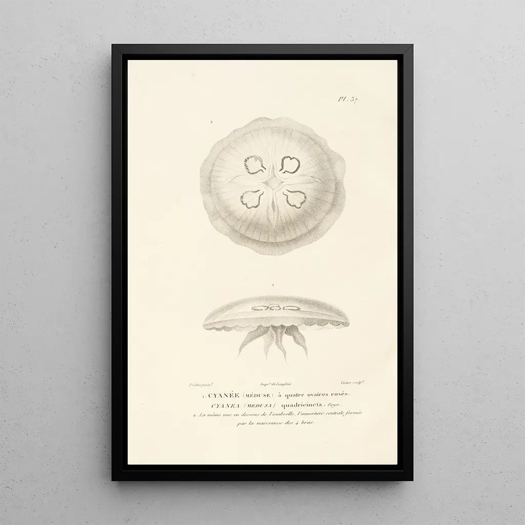 De kunstdruk van Centurie zoologique Pl37 dompelt ons onder in een rijke en kleurrijke wereld, waar elk dier met uitzonderlijke precisie wordt afgebeeld. Dit werk van René Primevère Lesson toont een verscheidenheid aan soorten, elk vastgelegd in hun natuurlijke habitat. De levendige nuances en de gedetailleerde textuurdetails creëren een meeslepende sfeer, die de kijker uitnodigt om de schoonheid van de fauna te verkennen. Dit doek is niet alleen een artistiek getuigenis, maar ook een viering van de natuur, die een gevoel van verwondering en respect voor de dierenwereld oproept.