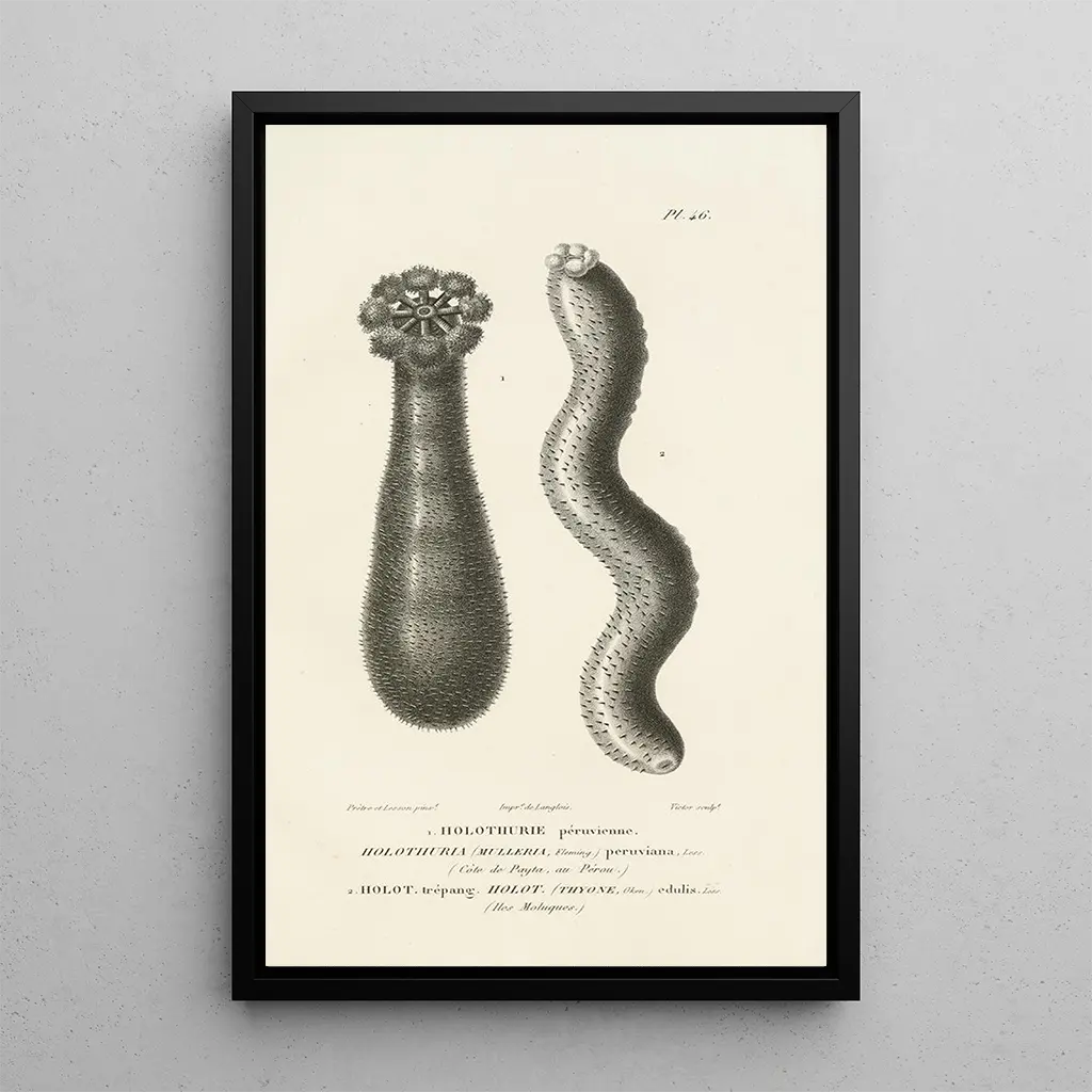 Centurie zoologique Pl46 : een eerbetoon aan de dierenrijkdom De kunstdruk Centurie zoologique Pl46 van René Primevère Lesson nodigt uit tot het ontdekken van de rijkdom van de fauna door middel van een minutieuze en kleurrijke voorstelling. Dit werk, vervaardigd met een delicate graveertechniek, benadrukt dieren in boeiende houdingen en onthult hun natuurlijke schoonheid. De levendige kleuren en de gedetailleerde precisie creëren een levendige, bijna magische sfeer die de toeschouwer meeneemt naar een wereld waar elk schepsel in de schijnwerpers staat. De evenwichtige en harmonieuze compositie van dit doek trekt onmiddellijk de aandacht en wekt bewondering. René Primevère Lesson : een kunstenaar ten dienste van de wetenschap René Primevère Lesson, natuurkundige en illustrator van de 19e eeuw, markeerde zijn tijd met zijn bijdragen aan de zoologische illustratie. Geïnspireerd door de wetenschappelijke ontdekkingen van zijn tijd, wist hij kunst en wetenschap te combineren om getrouwe weergaven van diersoorten te bieden. Zijn werken, zoals de Centurie zoologique, zijn het resultaat van een minutieuze observatie en een passie voor de natuur. Als pionier in zijn vakgebied wist Lesson de essentie van de biodiversiteit vast te leggen, waardoor hij een iconische figuur werd in de wetenschappelijke illustratie. Een decoratieve aanwinst met vele voordelen De kunstdruk van het schilderij Centurie zoologique Pl46 is een decoratieve keuze die elke ruimte kan verrijken. Of het nu in een woonkamer, kantoor of slaapkamer is, deze doek brengt een vleugje verfijning en intellect. De afdrukkwaliteit garandeert een opmerkelijke fideliteit aan de details van het originele werk, waardoor elke nuance en elke lijn gewaardeerd kan worden. Met zijn esthetische aantrekkingskracht en fascinerende geschiedenis is deze kunstdruk ideaal voor wie decoratie en cultuur wil combineren in hun interieur. Transformeer je ruimte met dit boeiende en evocatieve kunstwerk.
