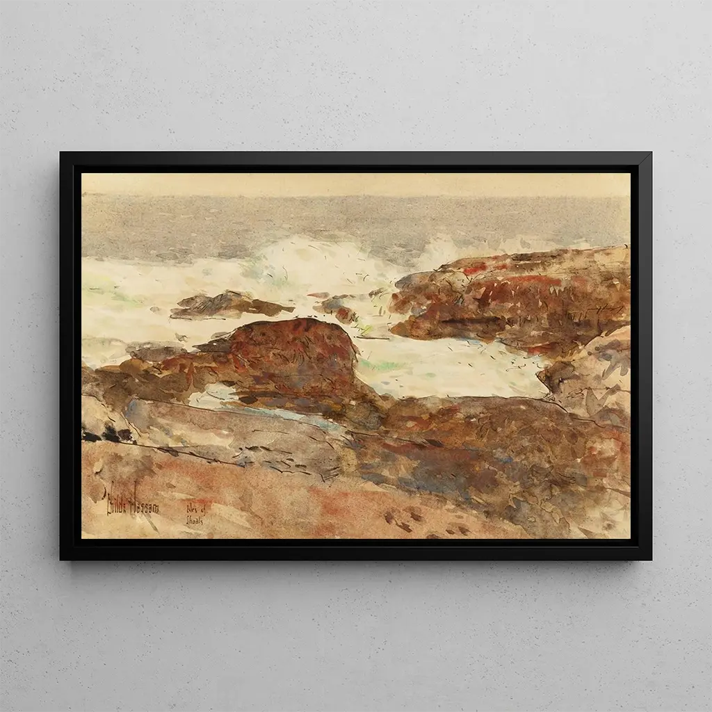 "Îles de Shoals" is een kunstdruk die de kijker meeneemt naar verre kusten, waar de zee en de lucht samenkomen in een dans van kleuren. De tinten blauw, groen en wit vermengen zich om een sfeer te creëren die zowel kalm als dynamisch is. De techniek van de kunstenaar, die speelt met licht en reflecties, brengt deze maritieme scène tot leven, waar de golven lijken te bewegen onder invloed van een lichte bries. De eilanden, zowel mysterieus als gastvrij, nodigen uit tot verkenning en ontdekking van een natuurlijke wereld die behouden is gebleven.