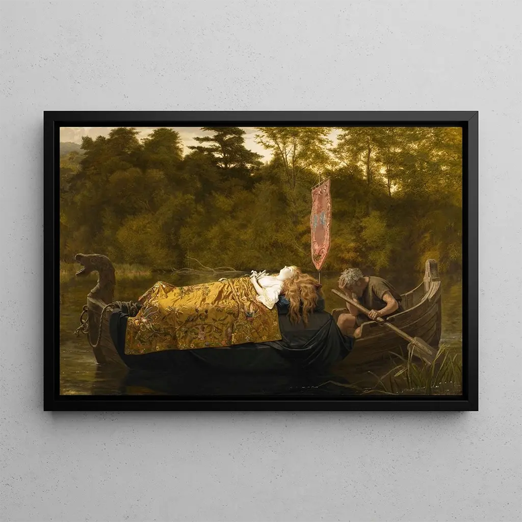 In deze kunstdruk van Elaine vangt Sophie Anderson de essentie van vrouwelijke schoonheid door middel van een delicate en harmonieuze compositie. De pastelkleuren, die zachte tinten roze en blauw mengen, creëren een serene en dromerige sfeer. De techniek van de kunstenaar, die subtiele penseelstreken gebruikt, brengt de textuur van de kleding en de zachtheid van de huid van haar model tot leven. De wazige achtergrond, die een romantisch landschap suggereert, nodigt de kijker uit om onder te dompelen in een wereld van poëzie en contemplatie. Elk detail van dit doek getuigt van een diep respect voor vrouwelijke schoonheid en gratie.