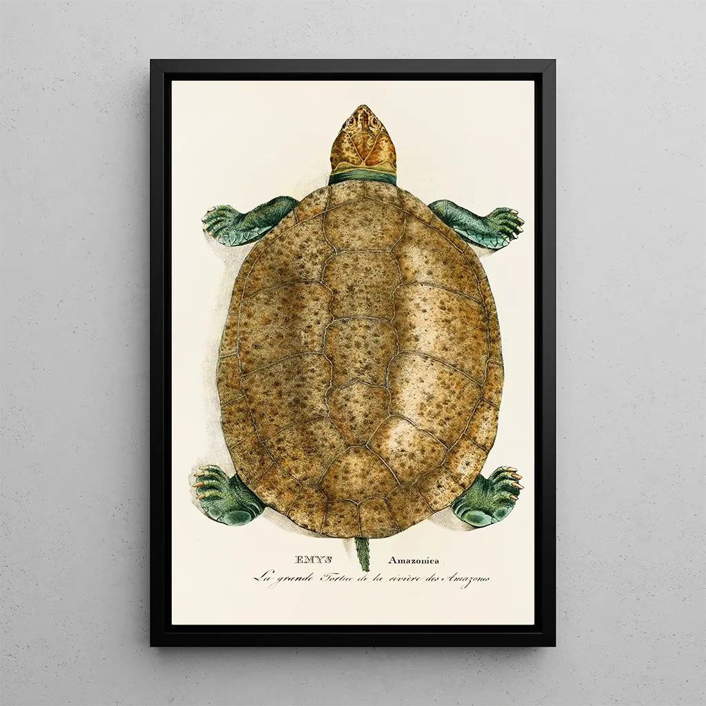 De kunstdruk van Emys Amazonica is een decoratief stuk dat harmonieus integreert in diverse omgevingen, of het nu in een woonkamer, kantoor of slaapkamer is. De kwaliteit van de afdruk en de aandacht voor details maken het een ideale keuze voor kunst- en natuurliefhebbers. Door deze doek aan uw inrichting toe te voegen, brengt u een vleugje exotisme en sereniteit in uw interieur. De rustgevende kleuren en de delicate patronen van dit werk zullen uw gasten boeien en een warme sfeer creëren. Kiezen voor deze kunstdruk betekent kiezen voor een werk dat de schoonheid en diversiteit van de natuurlijke wereld viert.