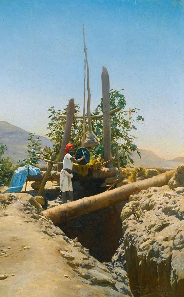 Rudolf Swoboda, Oostenrijkse schilder uit de 19e eeuw, is beroemd om zijn oosterse kunstdrukken die de essentie van verre culturen vastleggen. Zijn passie voor reizen en verkenning heeft hem geleid tot het schilderen van scènes geïnspireerd door zijn ervaringen in Afrika en het Midden-Oosten. In Nubië past binnen deze traditie en getuigt van zijn interesse in exotische landschappen en verschillende levenswijzen. Swoboda wist realisme en romantiek te combineren, waardoor hij een geïdealiseerde maar respectvolle visie bood op de culturen die hij afbeeldde, wat hem een blijvende erkenning in de kunstwereld heeft opgeleverd.