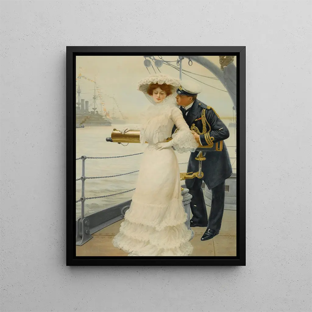 In het uitgestrekte panorama van de kunst slagen sommige werken erin de essentie van een tijdperk vast te leggen en tegelijkertijd de grenzen van de tijd te overstijgen. "En congé - Engelse school" past in deze traditie en nodigt de kijker uit tot een delicate en bedachtzame contemplatie. Dit stuk, doordrenkt met een nostalgische sfeer, roept momenten van pauze en reflectie op, waar schoonheid samengaat met de eenvoud van het dagelijks leven. Het transporteert de toeschouwer naar een wereld waarin elk detail telt, elke kleurnuance een verhaal vertelt, en elke uitgewisselde blik tussen de geschilderde figuren een moment in de tijd lijkt stil te staan.
