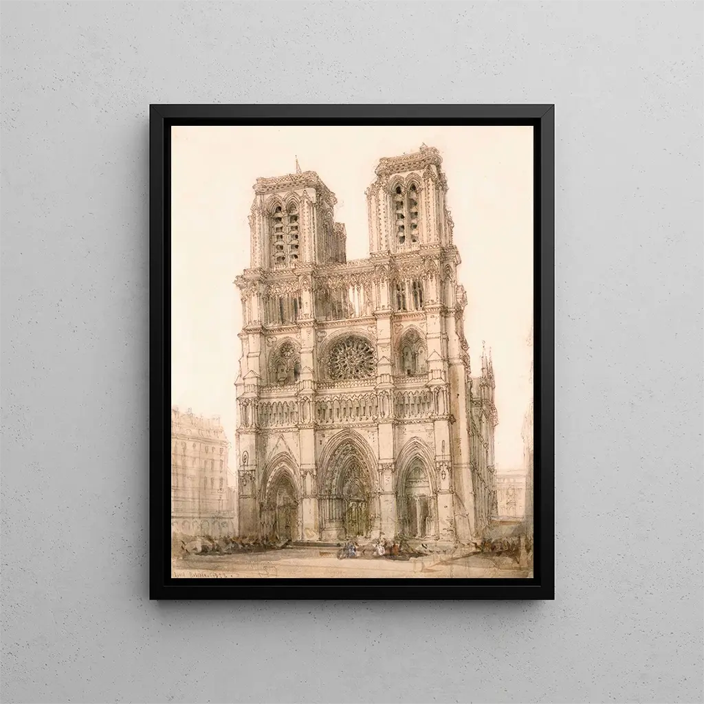David Roberts, geboren in Schotland in 1796, is een kunstenaar wiens carrière wordt gekenmerkt door een passie voor verkenning en ontdekking. Onvermoeibaar reizend, heeft hij Europa en het Midden-Oosten doorkruist, geïnspireerd door de landschappen en culturen die hij ontmoette. Zijn stijl, beïnvloed door het romantisme, getuigt van een fascinatie voor het exotisme en de architectuur. Roberts heeft zich weten te vestigen als een pionier van het stadslandschap, en beïnvloedde vele kunstenaars uit zijn tijd en latere generaties. Zijn werk heeft ook bijgedragen aan het populariseren van reizen als artistieke ervaring, waardoor anderen werden aangespoord om de bezochte plaatsen te verkennen en te vereeuwigen. Via "Entre Dame Paris" laat hij een waardevolle erfenis achter, een tijdloze visie op een voortdurend evoluerende stad.