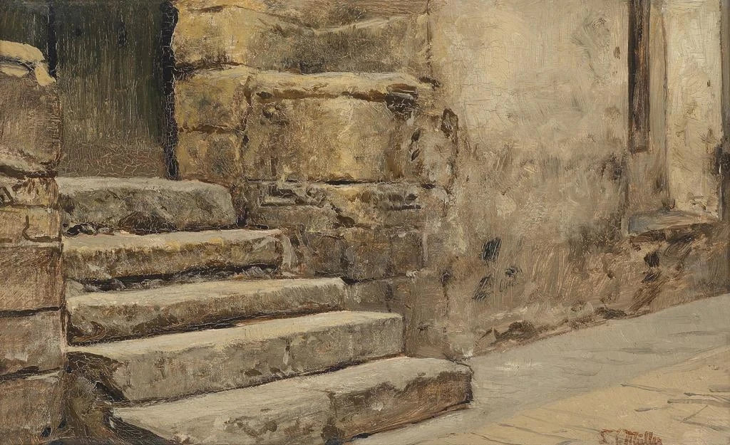Leopold Carl Müller, Oostenrijkse schilder uit de 19e eeuw, staat bekend om zijn levendige weergaven van het Oosten. Als gepassioneerde reiziger wist hij de essentie van de culturen die hij ontmoette vast te leggen, vooral door zijn werken geïnspireerd door zijn verblijven in Egypte en Turkije. Zijn stijl, gekenmerkt door minutieus realisme en een kleurrijk palet, getuigt van zijn bewondering voor oosterse architectuur en tradities. "Ingang van een moskee" is een perfect voorbeeld van zijn talent om de schoonheid van gebedshuizen te vereeuwigen, terwijl het een inkijkje geeft in de culturele rijkdom van die tijd.