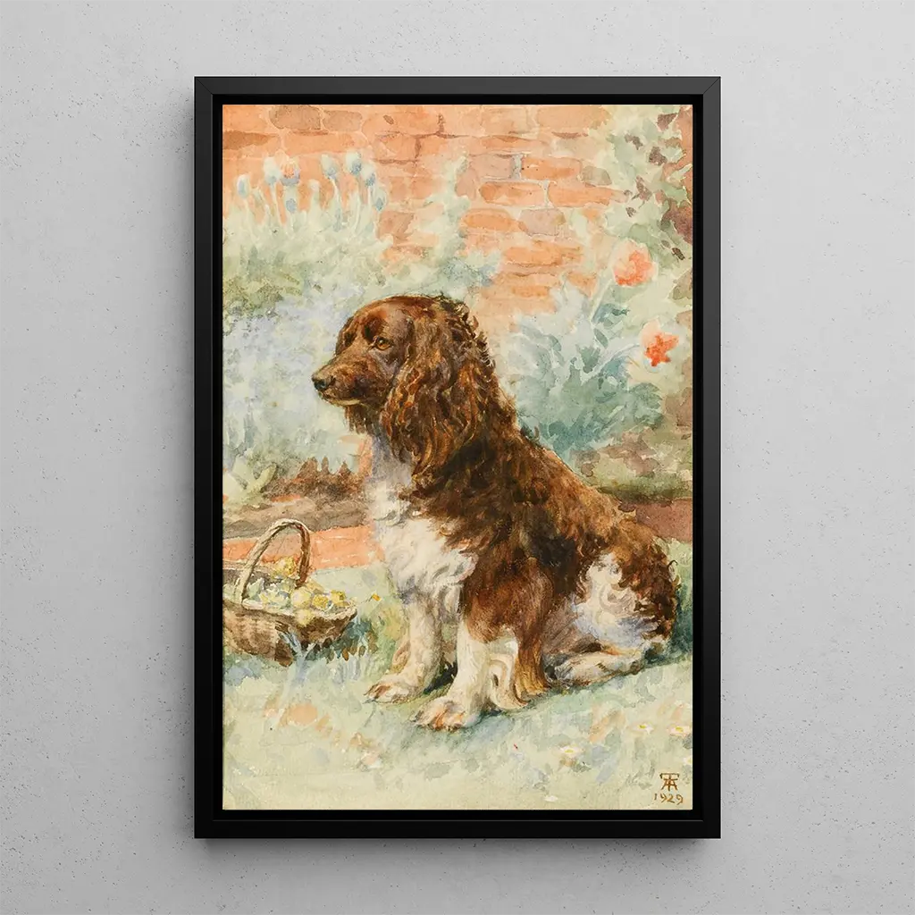 Kunstdruk | Epagneul in de tuin - Engelse school
