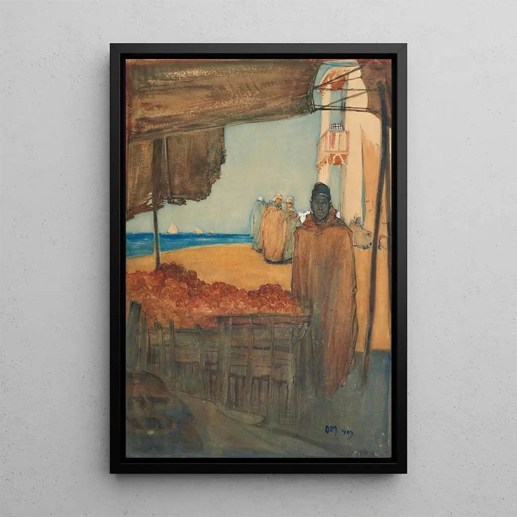 Étal de fruits à Port-Saïd : une célébration des couleurs et des saveurs L'œuvre "Étal de fruits à Port-Saïd" d'Owen Merton nous plonge dans un marché vibrant, où les fruits aux teintes éclatantes s'entremêlent dans une composition harmonieuse. Les nuances de rouge, de jaune et de vert s'animent sous la lumière du soleil, créant une atmosphère à la fois joyeuse et accueillante. Merton, avec sa technique impressionniste, parvient à capturer non seulement la richesse des produits mais aussi l'essence de la vie quotidienne dans ce port égyptien. Chaque détail, des ombres délicates aux reflets lumineux, évoque une sensation de chaleur et de convivialité, invitant le spectateur à savourer cette scène colorée. Owen Merton : un pionnier de l'impressionnisme en plein air Owen Merton, artiste néo-zélandais actif au début du XXe siècle, est reconnu pour son approche unique de la peinture en plein air. Influencé par les grands maîtres impressionnistes européens, il a su développer un style qui allie la lumière et la couleur avec une sensibilité particulière. Merton a passé une partie de sa carrière en Égypte, où il a été inspiré par les paysages et la culture locale, comme en témoigne cette œuvre. Son travail est emblématique d'une époque où les artistes cherchaient à capturer la beauté éphémère de la nature et des scènes de la vie quotidienne, faisant de lui une figure importante dans le mouvement impressionniste. Une acquisition décorative aux multiples atouts La kunstdruk "Étal de fruits à Port-Saïd" est une pièce décorative idéale pour apporter une touche de couleur et de chaleur à votre intérieur. Que ce soit dans un salon, un bureau ou une chambre, cette toile attire le regard et suscite des conversations. Sa qualité d'impression garantit une fidélité aux détails de l'œuvre originale, permettant de profiter de l'art d'Owen Merton au quotidien. Avec son attrait esthétique indéniable, cette kunstdruk est non seulement un ajout décoratif, mais aussi une invitation à la contemplation et à l'évasion vers des marchés ensoleillés.