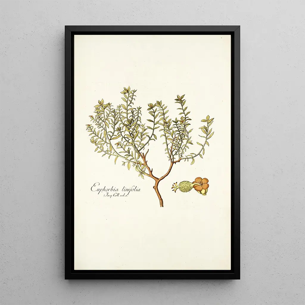 L'œuvre "Euphorbia linifolia" de Nikolaus Joseph Freiherr von Jacquin se présente comme un véritable hommage à la beauté des plantes. Deze kunstdruk benadrukt de delicieusheid van de vormen en de rijkdom van de kleuren die deze euphorbia- soort kenmerken. De compositie is zorgvuldig uitgewerkt, elk detail van de plant wordt minutieus weergegeven, wat een sfeer creëert die zowel rustgevend als verkwikkend is. De levendige tinten groen, aangevuld met zachtere nuances, roepen het natuurlijke licht op dat deze vegetatie omringt, en nodigen de kijker uit tot een aandachtige en respectvolle contemplatie van de natuur.