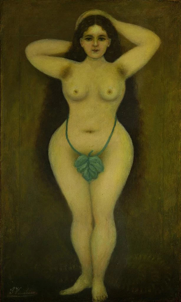 In het doek "Ève au paradis" brengt Mariano Silva Vandeira ons naar een levendige tuin van Eden, vol kleuren en licht. De compositie is rijk aan details, met groengele tinten die de frisheid van de natuur oproepen. De organische vormen van de bomen en bloemen lijken te dansen rond de centrale figuur van Ève, die de schoonheid en onschuld belichaamt. Vandeira's techniek, die realisme combineert met een vleugje romantiek, creëert een sfeer van sereniteit en mysterie, en nodigt de kijker uit om de puurheid van de schepping te bewonderen.