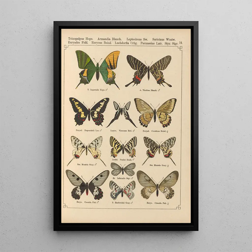 De kunstdruk van Papillons exotiques Pl014 transporte ons naar een wereld waar de natuur zich uitdrukt met éclat. De delicate patronen en de fonkelende kleuren van de vlinders ontvouwen zich gracieus op het doek, waardoor een levendige en dynamische scène ontstaat. Elk detail, minutieus weergegeven, getuigt van de expertise van Otto Staudinger. Het licht speelt op de doorschijnende vleugels, waardoor hun fragiele en vergankelijke schoonheid wordt benadrukt. Deze kunstwerk nodigt uit tot een aandachtige contemplatie, en onthult de magie van de natuur door de lens van de kunst. Het is een viering van de diversiteit en de pracht van de soorten die onze planeet bewonen.