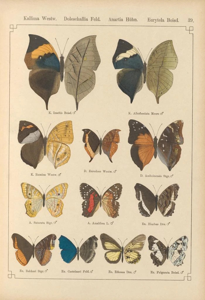 De "Papillons exotiques Pl039" van Otto Staudinger zijn een ware ode aan de biodiversiteit, die de rijkdom van soorten met finesse illustreren. Elke vlinder, met zijn unieke patronen en opvallende kleuren, lijkt tot leven te komen onder de oplettende blik van de toeschouwer. De harmonieuze compositie en het subtiele gebruik van schaduwen en licht creëren een boeiende sfeer, waarin de natuur zich in al haar pracht ontvouwt. Dit kunstwerk nodigt uit tot contemplatie en verwondering, en herinnert ons aan het belang van het behoud van de schoonheid van de natuurlijke wereld om ons heen.