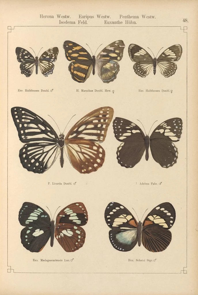 Otto Staudinger, actief aan het einde van de 19e eeuw en het begin van de 20e eeuw, wordt erkend om zijn essentiële rol in wetenschappelijke illustratie, vooral op het gebied van entomologie. Geïnspireerd door de naturalistische stromingen van zijn tijd, wist hij wetenschappelijke precisie te combineren met artistieke esthetiek. Zijn werken, waaronder de "Papillons exotiques Pl048", getuigen van een passie voor de natuur en een wens om de fauna artistiek te documenteren. Staudinger heeft bijgedragen aan de verspreiding van kennis over insecten, terwijl hij ze verheft tot kunstwerken. Zijn nalatenschap leeft voort in zijn illustraties die nog steeds kunstenaars en wetenschappers inspireren.