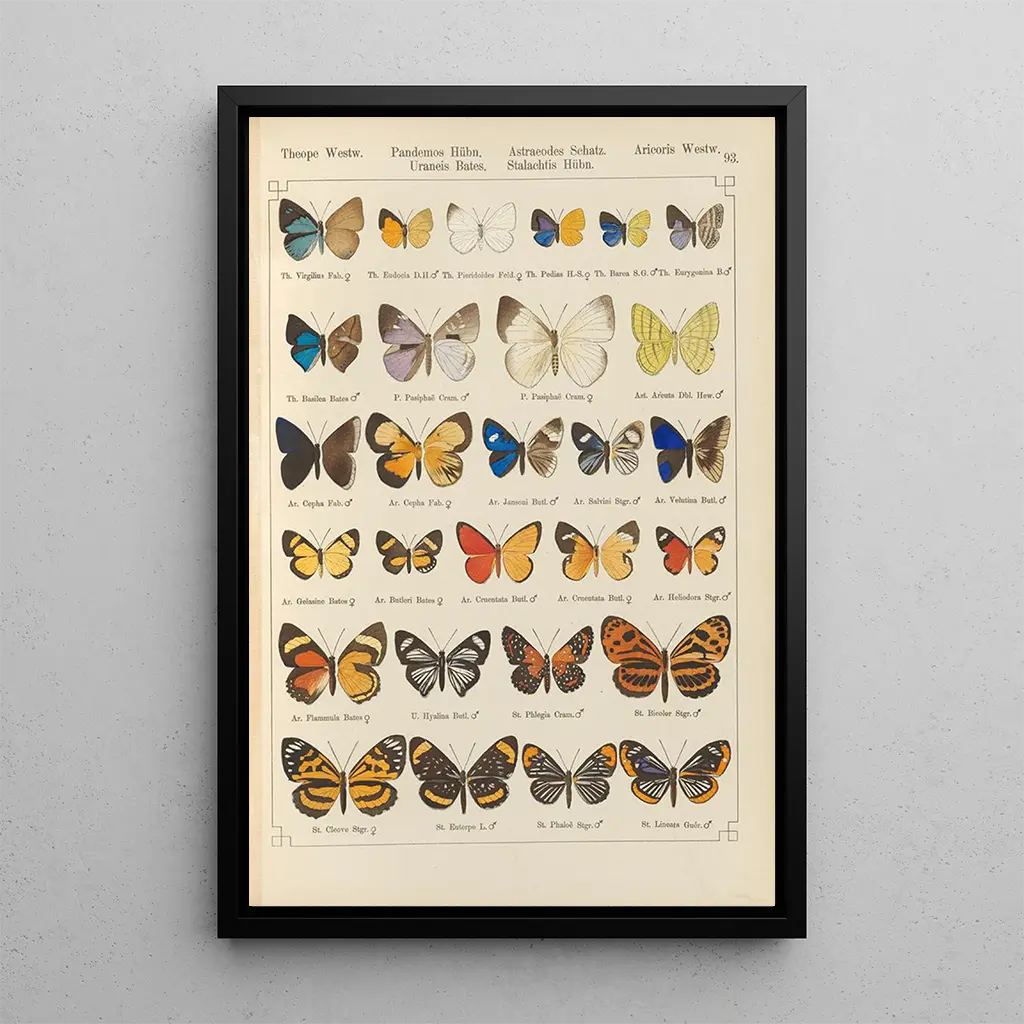 De kunstdruk Papillons exotiques Pl093 van Otto Staudinger brengt ons in een wereld waar de natuur zich uitdrukt door een palet van levendige kleuren. De delicate patronen van de vleugels van de vlinders, met hun nuances van rood, groen en goud, roepen een boeiende visuele harmonie op. De aquareltechniek, beheerst door de kunstenaar, geeft het werk een lichtheid en vloeiendheid die herinneren aan de gracieuze vlucht van deze insecten. De sfeer die uit dit doek straalt, is zowel dynamisch als rustgevend, en nodigt uit tot ontsnapping en contemplatie van de wonderen van de natuur.