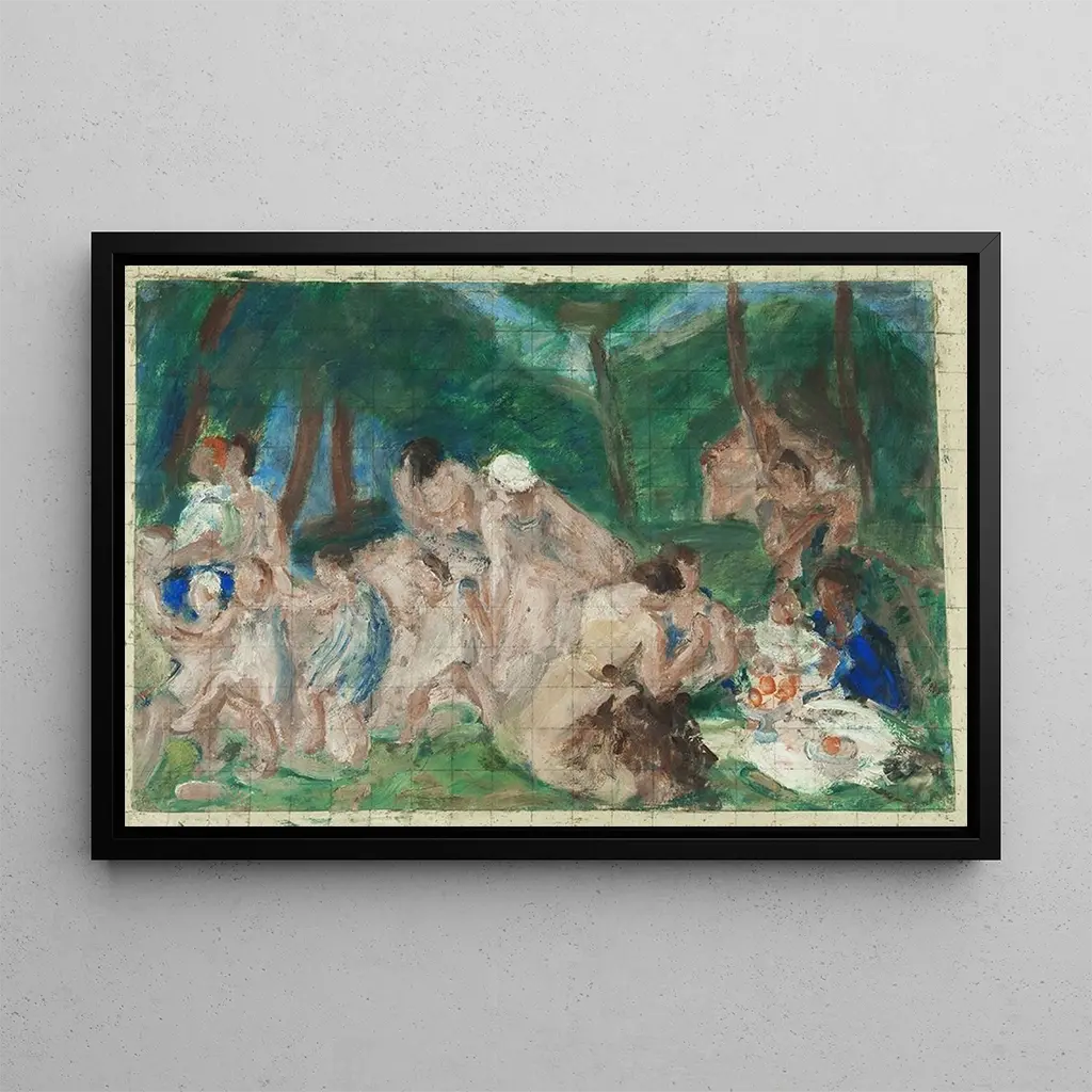 Farandole : een levendige dans van kleuren en vormen. "Farandole" van Jean Adler is een kunstdruk die beweging en levensvreugde viert. De personages, verwikkeld in een ontembare dans, worden weergegeven met felle kleuren en dynamische vormen die bijna tot leven lijken te komen. De techniek van de kunstenaar, die olieverf combineert met moderne invloeden, creëert een feestelijke en meeslepende sfeer. Elke penseelstreek roept een voelbare energie op, die de toeschouwer meeneemt in een wereld van vrolijkheid en viering. De compositie, rijk aan details en emoties, nodigt uit tot contemplatie en ontsnapping, waardoor dit een ware hymne aan het leven wordt. Jean Adler : een kunstenaar met een hart voor hedendaagse bewegingen. Jean Adler, actief in de 20e eeuw, wordt erkend om zijn vernieuwende benadering van schilderkunst. Geïnspireerd door het fauvisme en het expressionisme, heeft hij een unieke stijl ontwikkeld die abstractie en figuratie combineert. Zijn werken, vaak gekenmerkt door thema's van gezelligheid en delen, weerspiegelen een tijd waarin kunst zich bevrijdt van conventies. Adler heeft aan vele tentoonstellingen deelgenomen en bijgedragen aan de herdefinitie van de artistieke normen van zijn tijd. Zijn werk wordt nog steeds gevierd vanwege zijn vermogen om de essentie van het moderne leven vast te leggen door middel van levendige en boeiende composities. Een decoratief kunstwerk met vele voordelen. De reproductie van "Farandole" is een pronkstuk voor elke interieurdecoratie. Of het nu in een woonruimte, kantoor of slaapkamer is, dit schilderij brengt een vleugje dynamiek en kleur. De afdrukkwaliteit garandeert een uitzonderlijke fideliteit aan de heldere nuances van het originele werk, terwijl het een onmiskenbare esthetische aantrekkingskracht biedt. Door deze doek in uw inrichting te integreren, creëert u een vrolijke en inspirerende omgeving, bevorderlijk voor uitwisselingen en creativiteit. Dit kunstwerk verfraait niet alleen uw ruimte, maar maakt er ook een plek van delen en gezelligheid van.