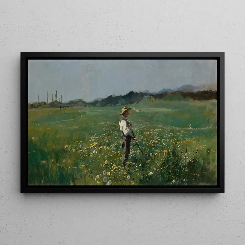 Faucheur dans un pré fleuri : een ode aan de natuur en het werk op het veld In deze kunstdruk getiteld "Faucheur dans un pré fleuri" vangt de kunstenaar Frank Buchser met grote delicatessse de schoonheid van de landelijke wereld. Het doek ontvouwt een palet van levendige kleuren, waarbij de heldere groenen van de velden zich mengen met de gouden accenten van de bloemen. De olieverftechniek op doek maakt het mogelijk om de texturen van de vegetatie en het zonlicht dat door de bladeren filtert, weer te geven. De sfeer die uit het werk spreekt, roept een diepe sereniteit op, en nodigt de kijker uit om zich onder te dompelen in dit moment van hard werken, terwijl de schoonheid van de omringende natuur wordt gevierd. Frank Buchser : een getuige van zijn tijd en het landelijke leven Frank Buchser, Zwitserse schilder uit de 19e eeuw, staat bekend om zijn voorstellingen van het boerenleven en landschappen. Geïnspireerd door het realisme, past hij zich aan een periode aan waarin de kunst zich richt op meer authentieke en alledaagse onderwerpen. Zijn werken getuigen van een bijzondere gevoeligheid voor scènes uit het landelijke leven, vaak doordrenkt met een nostalgie voor een wereld in verandering. Buchser was ook een reiziger, wat hem in staat stelde om diverse invloeden in zijn kunst te integreren, waardoor zijn schilderstijl verrijkt werd. Zijn werk blijft een waardevol getuigenis van de relatie tussen mens en natuur in een tijd waarin industrialisatie begon de landschappen te transformeren. Een decoratief stuk met vele voordelen De kunstdruk van "Faucheur dans un pré fleuri" is een decoratief stuk dat elk interieur kan verrijken, of het nu in een woonkamer, kantoor of slaapkamer is. De kwaliteit van de kunstdruk garandeert een opmerkelijke trouw aan het originele werk, waardoor elk detail en elke kleurnuance kan worden gewaardeerd. Dit schilderij brengt een vleugje frisheid en sereniteit in uw inrichting, terwijl het thema's van arbeid en natuur oproept. De esthetische aantrekkingskracht maakt het een ideale keuze voor wie een warme en gastvrije sfeer thuis wil creëren, terwijl het artistieke erfgoed van Frank Buchser wordt gevierd.
