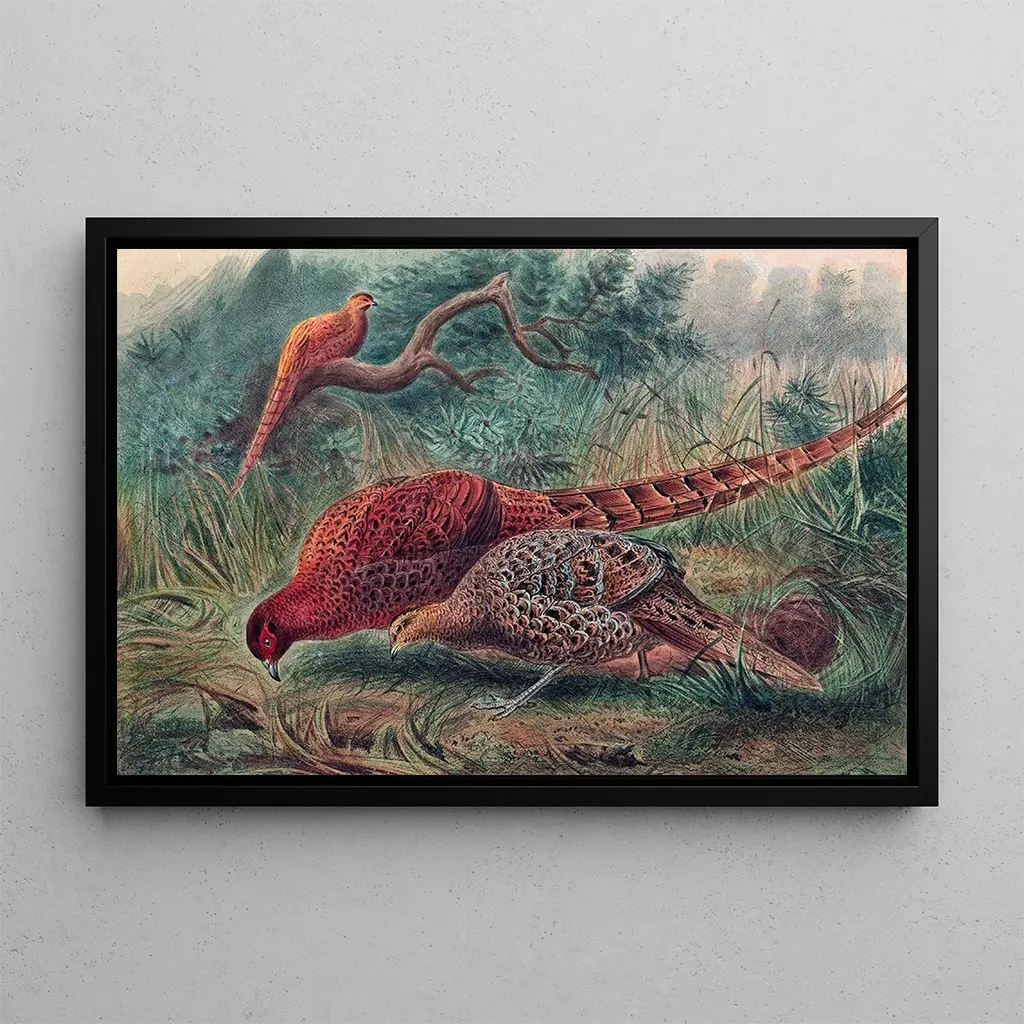 Faisan de Soemmerring : een viering van de wilde natuur De schilderij "Faisan de Soemmerring" van Joseph Wolf is een levendige kunstdruk die de pracht van de fauna vastlegt. De compositie benadrukt een majestueuze fazant, waarvan de glanzende veren onder het licht schitteren en een palet van rijke kleuren onthullen, variërend van goud tot smaragdgroen. De aquareltechniek, beheerst door Wolf, geeft een gevoel van lichtheid aan het geheel, terwijl de wazige achtergrond een natuurlijke, bijna dromerige omgeving oproept. De sfeer die deze kunstdruk uitstraalt nodigt uit tot rustige contemplatie, waarbij de kijker bijna het gezang van vogels kan horen en de lichte bries kan voelen. Joseph Wolf : een meester van de fauna uit de 19e eeuw Joseph Wolf, geboren in 1820, wordt erkend als een van de grootste illustratoren van dieren uit zijn tijd. Oorspronkelijk uit Duitsland, werd hij sterk beïnvloed door exploratietochten en wetenschappelijke ontdekkingen van zijn periode. Zijn carrière werd gekenmerkt door een nauwgezette aandacht voor details en een passie voor het realistisch weergeven van dieren. Wolf werkte samen met naturalisten en wetenschappers, wat zijn begrip van de soorten die hij schilderde verrijkte. Zijn werk, waarvan "Faisan de Soemmerring" een emblematisch voorbeeld is, getuigt van het belang van de natuur in de kunst van de 19e eeuw, een tijd waarin biodiversiteit nog grotendeels onbekend was. Een decoratief kunstwerk met vele voordelen De kunstdruk van de "Faisan de Soemmerring" is een ideaal decoratief stuk voor diverse woonruimtes, of het nu in een woonkamer, kantoor of slaapkamer is. De kwaliteit van de afdruk en de trouw aan het originele werk garanderen een indrukwekkend esthetisch resultaat dat de sfeer in elke ruimte kan verhogen. Dit schilderij trekt de aandacht en stimuleert gesprekken, terwijl het een vleugje natuur en sereniteit aan je interieur toevoegt. Door te kiezen voor deze doek, kies je voor een kunstwerk dat schoonheid, geschiedenis en een diep respect voor de fauna combineert, waardoor je ruimte een plek wordt van ontsnapping en inspiratie.