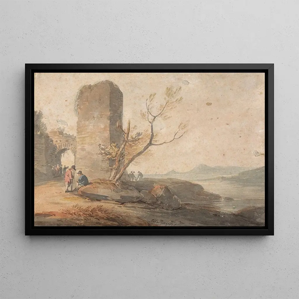 Figuren bij een vervallen boog: een evocatief schilderij van de melancholie van het verleden De kunstdruk van Figuren bij een vervallen boog van William Payne dompelt ons onder in een landschap vol nostalgie. Dit doek, uitgevoerd met aardetinten en groene accenten, roept een sfeer op die zowel sereen als melancholisch is. De personages, gekleed in traditionele kleding, lijken op te gaan in het decor, terwijl de vervallen boog de passage van de tijd en de kwetsbaarheid van het bestaan symboliseert. Payne's techniek, die aquarel en olie combineert, creëert een verbluffende diepte en nodigt de kijker uit om de details van de omgeving te bekijken en de emotie die ervan uitgaat te voelen. William Payne: een meester van het Engelse landschap van de 18e eeuw William Payne, actief in de 18e eeuw, staat bekend om zijn landelijke landschappen die de schoonheid van het Engelse platteland vastleggen. Geïnspireerd door de romantische beweging, past hij binnen een artistieke traditie die de natuur en emotie waardeert. Zijn werken, vaak doordrenkt met poëzie, getuigen van een bijzondere gevoeligheid voor landschappen en scènes uit het dagelijks leven. Hoewel hij minder bekend is dan sommige van zijn tijdgenoten, heeft Payne een blijvende indruk achtergelaten in de kunstwereld, en zijn vermogen om diepe gevoelens op te roepen door eenvoudige landschappen is wat hem onderscheidt. De kunstdruk van Figuren bij een vervallen boog is een perfect voorbeeld van zijn talent. Een decoratief stuk met vele voordelen De kunstdruk van Figuren bij een vervallen boog is een ideaal decoratief stuk om je interieur te verrijken. Of het nu in een woonkamer, kantoor of slaapkamer is, dit schilderij brengt een vleugje elegantie en rust in je ruimte. De kwaliteit van de kunstdruk garandeert een trouwheid aan de kleuren en details van het originele werk, zodat je ten volle kunt genieten van de esthetische aantrekkingskracht. Door voor dit doek te kiezen, kies je voor een kunstwerk dat niet alleen je decor verfraait, maar ook uitnodigt tot reflectie en contemplatie, waardoor elk bliksem een moment van vrede en ontsnapping wordt.