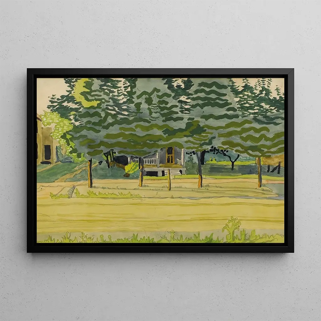 De kunstdruk "Eind van de middag" van Charles Ephraim Burchfield roept een zachte en melancholische sfeer op, en vangt de magie van de laatste zonnestralen. De warme en levendige kleuren, variërend van oranje tot gouden geel, mengen zich om een bijna dromerige atmosfeer te creëren. Burchfield, met zijn unieke techniek, slaagt erin de vergankelijke schoonheid van de natuur over te brengen, waarbij elk detail, van bladeren tot wolken, lijkt te vibreren onder het effect van het afnemende licht. Dit doek nodigt uit tot een contemplatieve pauze, een moment van verbinding met de natuurlijke wereld.