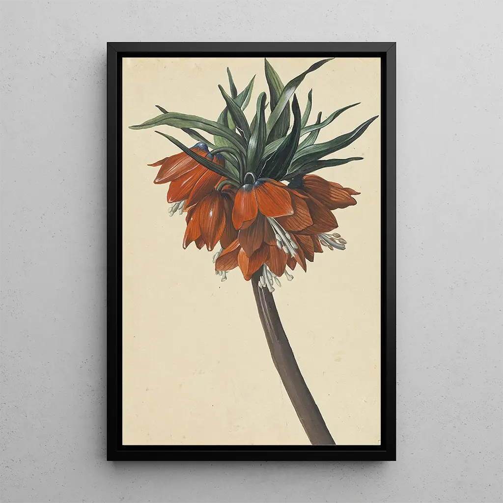 Fritillaria imperialis : een ode aan de bloemrijke majesteit. De kunstdruk van "Fritillaria imperialis" van Sebastian Wegmayr brengt ons naar het hart van een weelderige tuin, waar deze iconische bloem trots omhoog rijst. De levendige tinten geel en oranje, gecombineerd met groene accenten, creëren een opvallend contrast dat onmiddellijk de aandacht trekt. De techniek van Wegmayr, gekenmerkt door een verbluffend realisme, laat de textuur van de bloemblaadjes en de delicatesse van de stelen voelen. Dit werk roept niet alleen de schoonheid van de fritillaria op, maar ook de rijkdom van de natuur, en viert de pracht van bloemen in al hun diversiteit. Sebastian Wegmayr : een virtuoos in bloemdetail. Sebastian Wegmayr, actief in de 18e eeuw, is een kunstenaar wiens werk zich onderscheidt door een minutieuze aandacht voor details en een passie voor botanica. Zijn stijl, geworteld in het realisme, is geïnspireerd door de artistieke tradities van zijn tijd, waarin de natuur vaak een geliefd onderwerp was. Wegmayr wist de pracht van bloemen vast te leggen, vooral van zeldzame soorten zoals de keizerlijke fritillaria, die de adel en schoonheid symboliseert. Zijn werk getuigt van een tijd waarin kunst en wetenschap samenkwamen, waardoor toeschouwers de natuur vanuit een nieuw perspectief konden waarderen. Een decoratief stuk met vele voordelen. Het kiezen van een kunstdruk van "Fritillaria imperialis" van Sebastian Wegmayr betekent kiezen voor een stuk dat je interieurdecoratie verrijkt. Of het nu gaat om een werkplek, een gastvrije woonkamer of een intieme slaapkamer, dit doek brengt kleur en verfijning. De kwaliteit van de kunstdruk garandeert een trouwheid aan de nuances en details van het originele werk, wat zorgt voor een sterke visuele impact. Met zijn onmiskenbare charme wordt dit werk een centraal element in je decoratie, terwijl het uitnodigt tot contemplatie en waardering van de natuurlijke schoonheid.