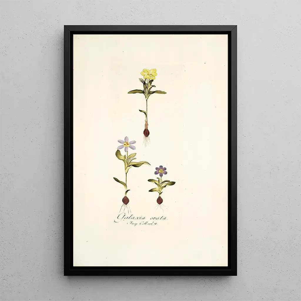 De kunstdruk van Galaxia ovata dompelt ons onder in een fascinerend botanisch universum, waar nuances van groen en blauw harmonieus samensmelten. De delicate bladeren, met afgeronde contouren, lijken zich gracieus te ontvouwen, en roepen een bijna luchtige lichtheid op. De aquareltechniek, beheerst door Nikolaus Joseph Freiherr von Jacquin, biedt een transparantie die elk detail tot leven brengt en een eerbetoon is aan de schoonheid van de natuur. De sfeer die van dit werk uitgaat, nodigt uit tot contemplatie, alsof elke penseelstreek een verhaal vertelt over groei en bloei.