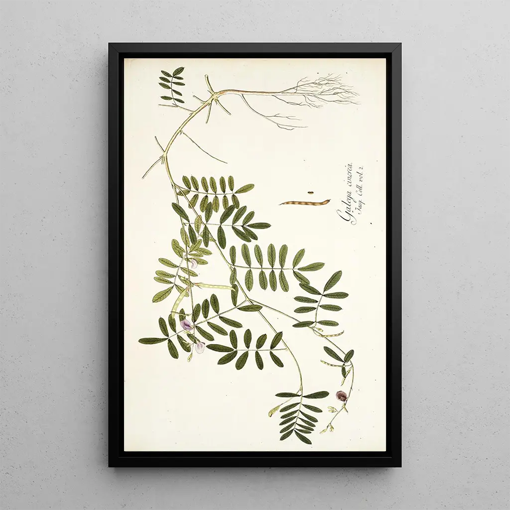 De kunstdruk van Galega cinerea, een werk van Nikolaus Joseph Freiherr von Jacquin, dompelt ons onder in een fascinerend botanisch universum. Dit doek, rijk aan details, benadrukt de schoonheid van bloemen en bladeren met opmerkelijke precisie. De zachte, genuanceerde kleuren, variërend van tere groen tot stralend wit, creëren een rustgevende sfeer. De aquareltechniek, beheerst door de kunstenaar, maakt het mogelijk om het licht en de textuur van de planten vast te leggen, wat een gevoel van frisheid en vitaliteit geeft. Elk element van deze compositie lijkt de kijker uit te nodigen tot een aandachtige contemplatie, waarbij de complexiteit en harmonie van de natuur worden onthuld.