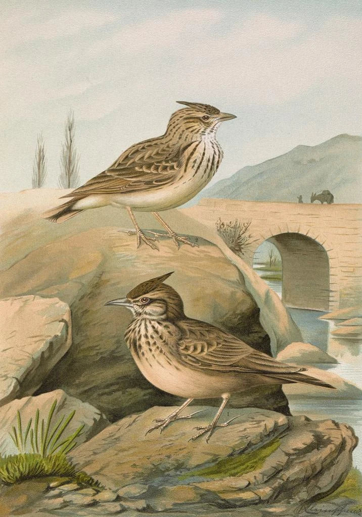 Schilderij Galerida cristata Galerida Theklae - Johann Friedrich Naumann