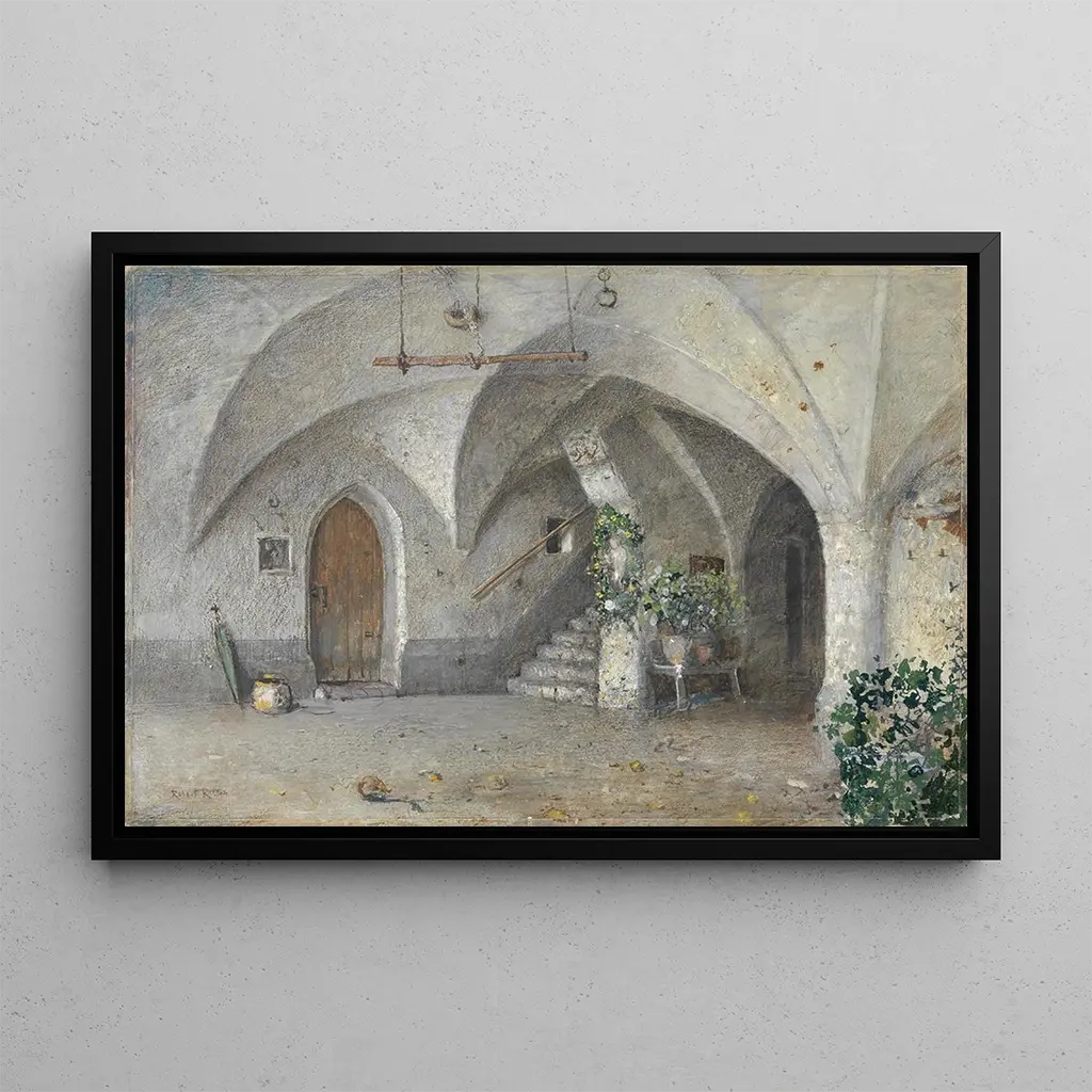 De kunstdruk "Couloir chez le Kantioler à Klausen" van Robert Russ biedt een fascinerend beeld van het leven in de Alpen. Het schilderij toont een warme binnenruimte, waar zacht licht door de ramen filtert en de houten muren en alledaagse voorwerpen verlicht. De warme, aardse kleuren creëren een uitnodigende sfeer en nodigen uit tot het ontdekken van deze leefruimte. Russ' techniek, doordrenkt met realisme, laat je de textuur van de materialen en de authenticiteit van deze scène voelen, en eert de eenvoud en schoonheid van het bergleven.