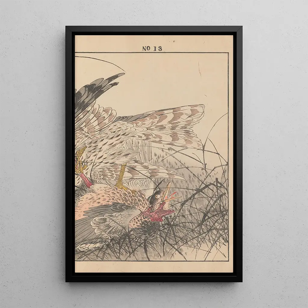 De kunstdruk van Keinen kach gafu Pl136 brengt ons naar een weelderige tuin, waar elke bloem lijkt een verhaal te vertellen. De levendige tinten en de delicate details van de bloemblaadjes en bladeren creëren een levendige en vrolijke sfeer. De techniek van de ukiyo-e, met zijn vloeiende lijnen en heldere kleuren, roept een gevoel van lichtheid op. Dit werk is een viering van de natuur, die de vergankelijke schoonheid van bloemen in al hun pracht vastlegt, en nodigt uit tot een verwonderde contemplatie.