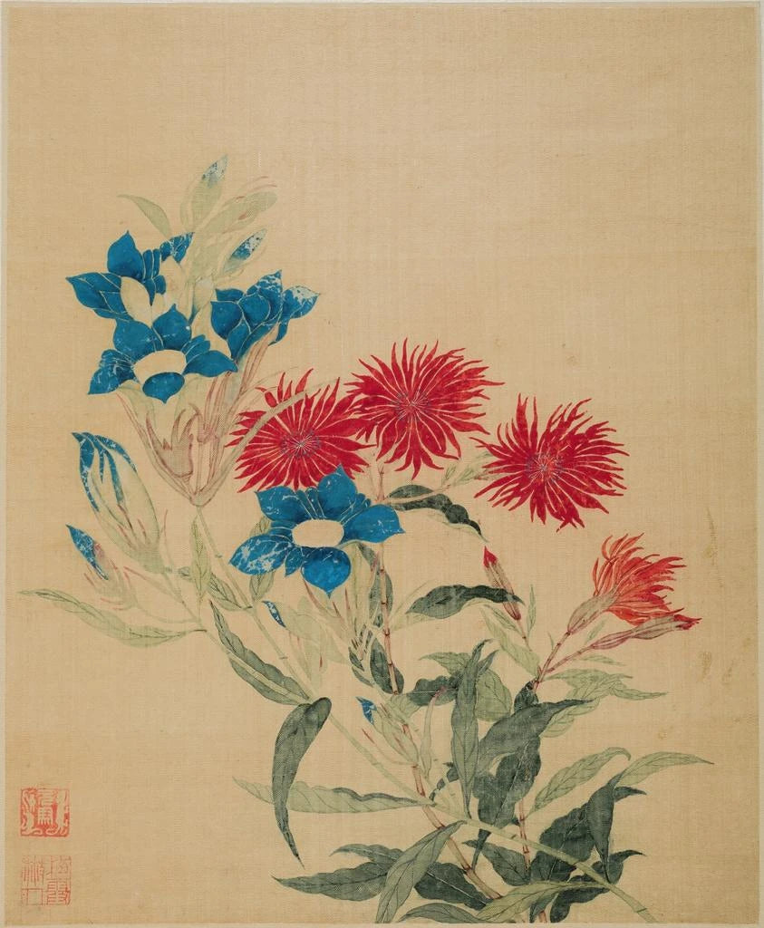 Blauwe gentiaan en rode lychnis - Ma Yuanyu