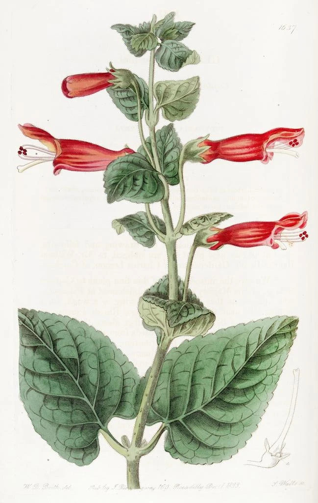 Schilderij Gesnera du Capitaine Sutton - Sydenham Edwards | Kunstdruk