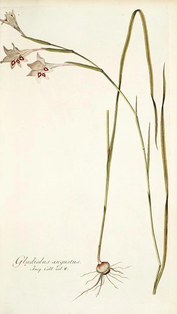 Schilderij Gladiolus angustus - Nikolaus Joseph Freiherr von Jacquin | Kunstdruk