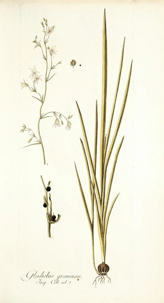 Schilderij Gladiolus gramineus - Nikolaus Joseph Freiherr von Jacquin | Kunstdruk