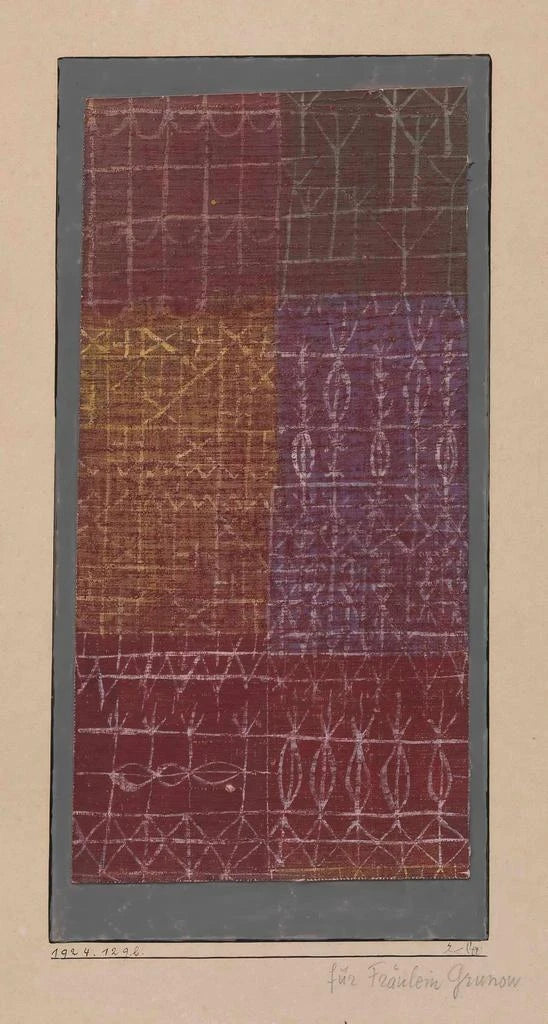 Geboren in 1879 in Zwitserland, is Paul Klee een iconische figuur van de twintigste eeuw, wiens werk de moderne kunst diep heeft beïnvloed. Geïnspireerd door het kubisme, het expressionisme en het surrealisme, ontwikkelt hij een unieke stijl die droom en realiteit verweeft. Klee doceert aan het Bauhaus, waar hij zijn vernieuwende ideeën deelt met jonge kunstenaars, en zo bijdraagt aan de evolutie van de hedendaagse kunst. Zijn speelse aanpak en vermogen om eenvoudige elementen om te zetten in complexe composities maken hem tot een onmisbare kunstenaar. "Rideau" is een perfect voorbeeld van zijn talent om te spelen met percepties en emoties op te roepen via abstracte vormen.
