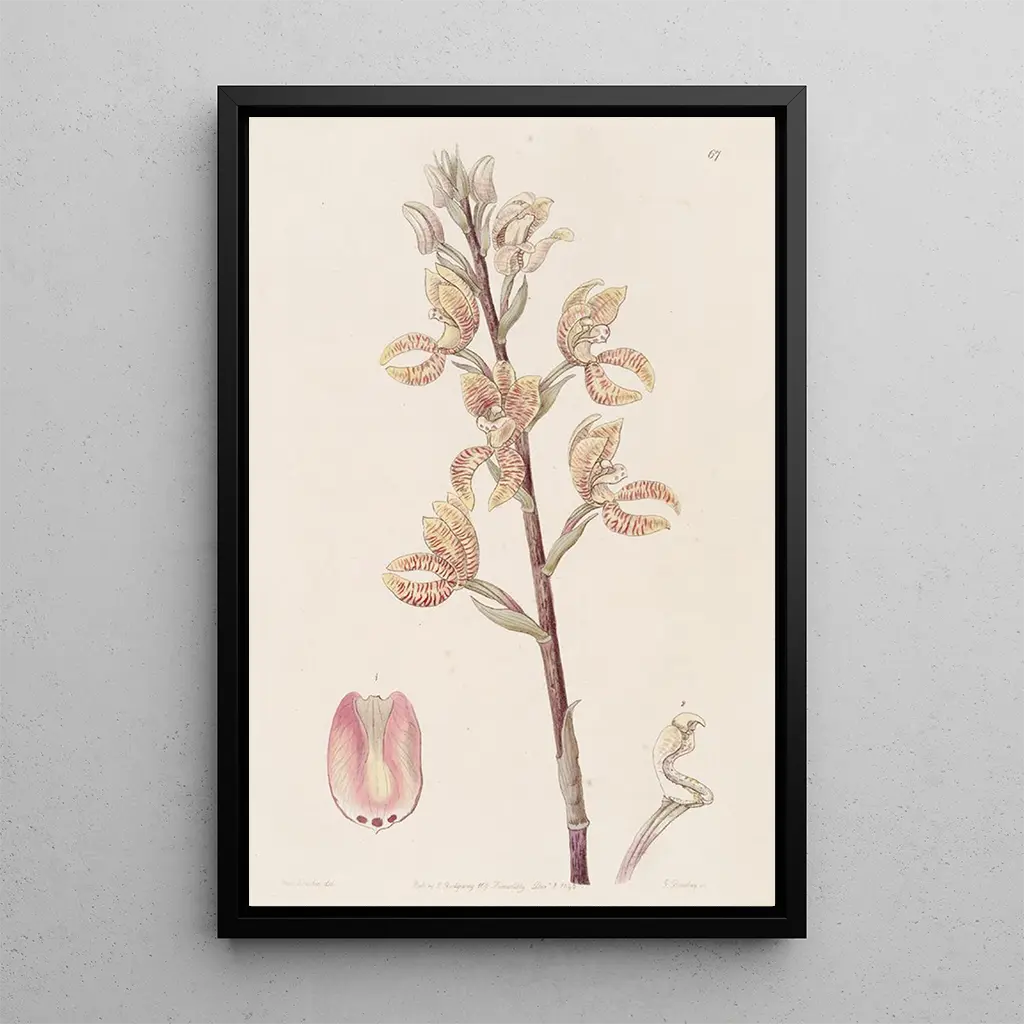 Govenia de Linden : een delicate bloemrijke harmonie De kunstdruk van Govenia de Linden, vervaardigd door Sydenham Edwards, dompelt ons onder in een botanisch universum vol verfijning. De pastelkleuren mengen subtiel, waardoor een rustgevende en contemplatieve sfeer ontstaat. De precisie van de details, typerend voor botanische illustraties, benadrukt elke bloemblad en blad, en onthult de intrinsieke schoonheid van deze plant. De aquareltechniek, vakkundig toegepast, geeft het werk een lichtheid en transparantie die uitnodigen tot verwondering. Dit doek is veel meer dan een eenvoudige voorstelling; het roept de sereniteit op van weelderige tuinen en de rijkdom van de natuur. Sydenham Edwards : een pionier in botanische illustratie Sydenham Edwards, actief in het begin van de 19e eeuw, wordt erkend voor zijn belangrijke rol in de ontwikkeling van botanische illustratie. Geïnspireerd door de wetenschappelijke ontdekkingen van zijn tijd, wist hij wetenschappelijke nauwkeurigheid te combineren met artistieke gevoeligheid. Zijn werken, vaak gepubliceerd in referentieboeken, hebben bijgedragen aan de verspreiding van botanische kennis. Edwards was ook een van de eerste kunstenaars die exotische planten illustreerden, wat getuigt van de belangstelling voor botanica in die periode. Zijn werk vormt een ware brug tussen kunst en wetenschap, waardoor hij een onmisbare figuur is in de geschiedenis van botanische kunst. Een decoratief stuk met vele voordelen De kunstdruk van Govenia de Linden is een decoratief item dat harmonieus integreert in diverse ruimtes, of het nu een woonkamer, kantoor of slaapkamer is. Het zachte palet en de verfijnde details brengen een vleugje natuur en rust in uw interieur. De kwaliteit van de afdruk garandeert een opmerkelijke trouw aan het originele werk, waardoor elke nuance en lijn goed tot zijn recht komt. Door voor dit doek te kiezen, kiest u voor een decoratief element dat niet alleen uw ruimte verfraait, maar ook een passie voor botanica en kunst uitstraalt, waardoor elk bliksem een moment van contemplatie wordt.