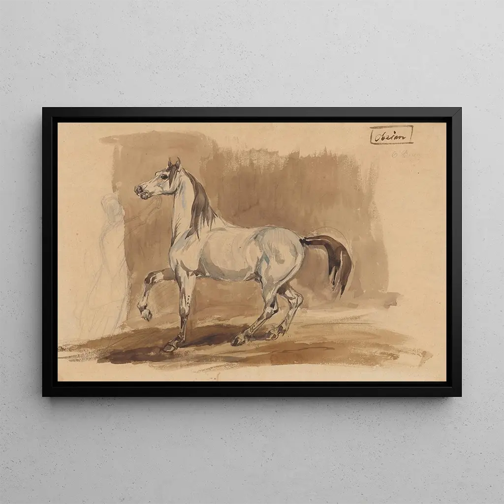 Grijze Arabische Paard Obeian: de majesteit van een nobele ruiter Grijze Arabische Paard Obeian, een kunstdruk van Piotr Michałowski, vangt de schoonheid en kracht van een majestueus paard. Het doek beeldt een dier af met een zilverkleurige vacht, waarbij de minutieuze details de fijnheid van zijn musculatuur en de elegantie van zijn houding onthullen. Michałowski, die realistische schildertechnieken gebruikt, slaagt erin een sfeer van kracht en gratie over te brengen. De sobere achtergrond benadrukt het hoofdonderwerp, waardoor een contrast ontstaat dat de imposante aanwezigheid van dit paard versterkt. Deze kunstdruk is een viering van de schoonheid van dieren, en nodigt de kijker uit om de nobele aard van dit equidé te waarderen. Piotr Michałowski: een meester in dierenrealisme Piotr Michałowski, een Poolse schilder uit de 19e eeuw, staat bekend om zijn realistische weergaven van paarden en landelijke scènes. Opgeleid aan de Kunstacademie van Warschau, laat hij zich inspireren door Europese artistieke tradities terwijl hij elementen van zijn culturele erfgoed integreert. Zijn passie voor paarden, die hij beschouwt als symbolen van vrijheid en schoonheid, straalt uit in al zijn werken. Michałowski heeft de essentie van deze dieren weten vast te leggen, waardoor de kunstdruk van Grijze Arabische Paard Obeian een iconisch stuk wordt van zijn oeuvre, dat getuigt van zijn talent en toewijding aan het realisme. Een decoratief kunstdruk met vele voordelen De kunstdruk van Grijze Arabische Paard Obeian is een decoratieve keuze die een vleugje elegantie aan uw interieur zal toevoegen. Of het nu in een kantoor, woonkamer of slaapkamer is, dit doek past perfect bij diverse decoratiestijlen en voegt een vleugje verfijning toe. De kwaliteit van de kunstdruk garandeert een nauwkeurige weergave van de details van het originele werk, waardoor u ten volle kunt genieten van de schoonheid van dit paard. Door te kiezen voor deze kunstdruk, geeft u uw ruimte een kunstzinnig element dat zowel kracht als gratie uitstraalt, en verrijkt u uw visuele omgeving op een betekenisvolle manier.
